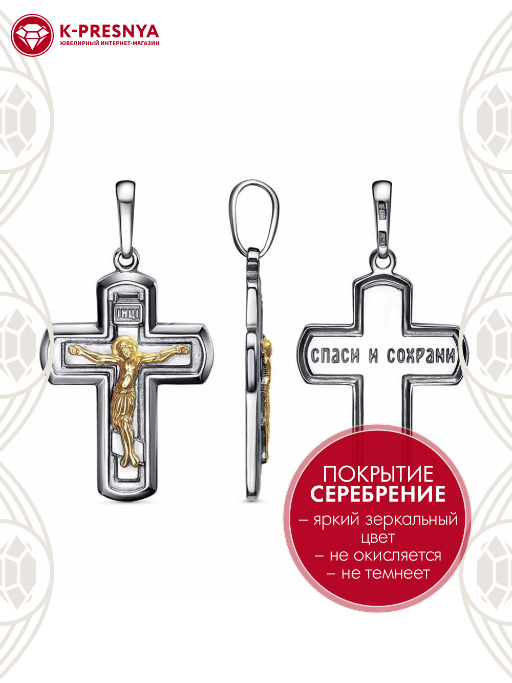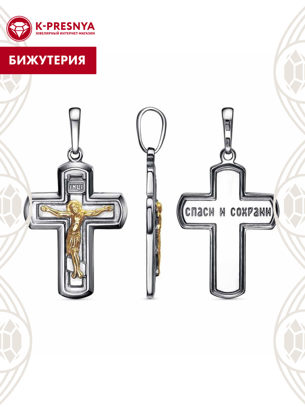 Подвеска бижутерия, покрытие - серебрение с оксидированием, выборочное золочение, без вставок