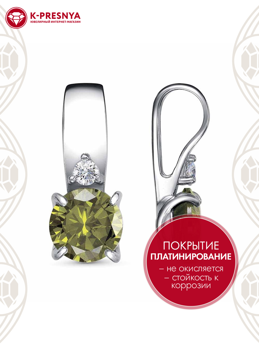 Подвеска бижутерия, покрытие - платинирование, вставка - фианит (недрагоценный камень)