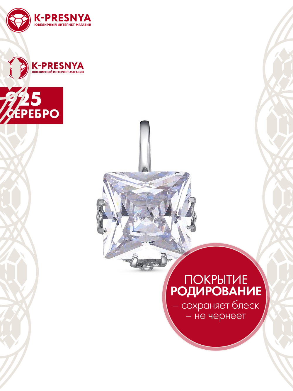 Подвеска серебро 925 пробы, покрытие - родирование, вставка - горный хрусталь