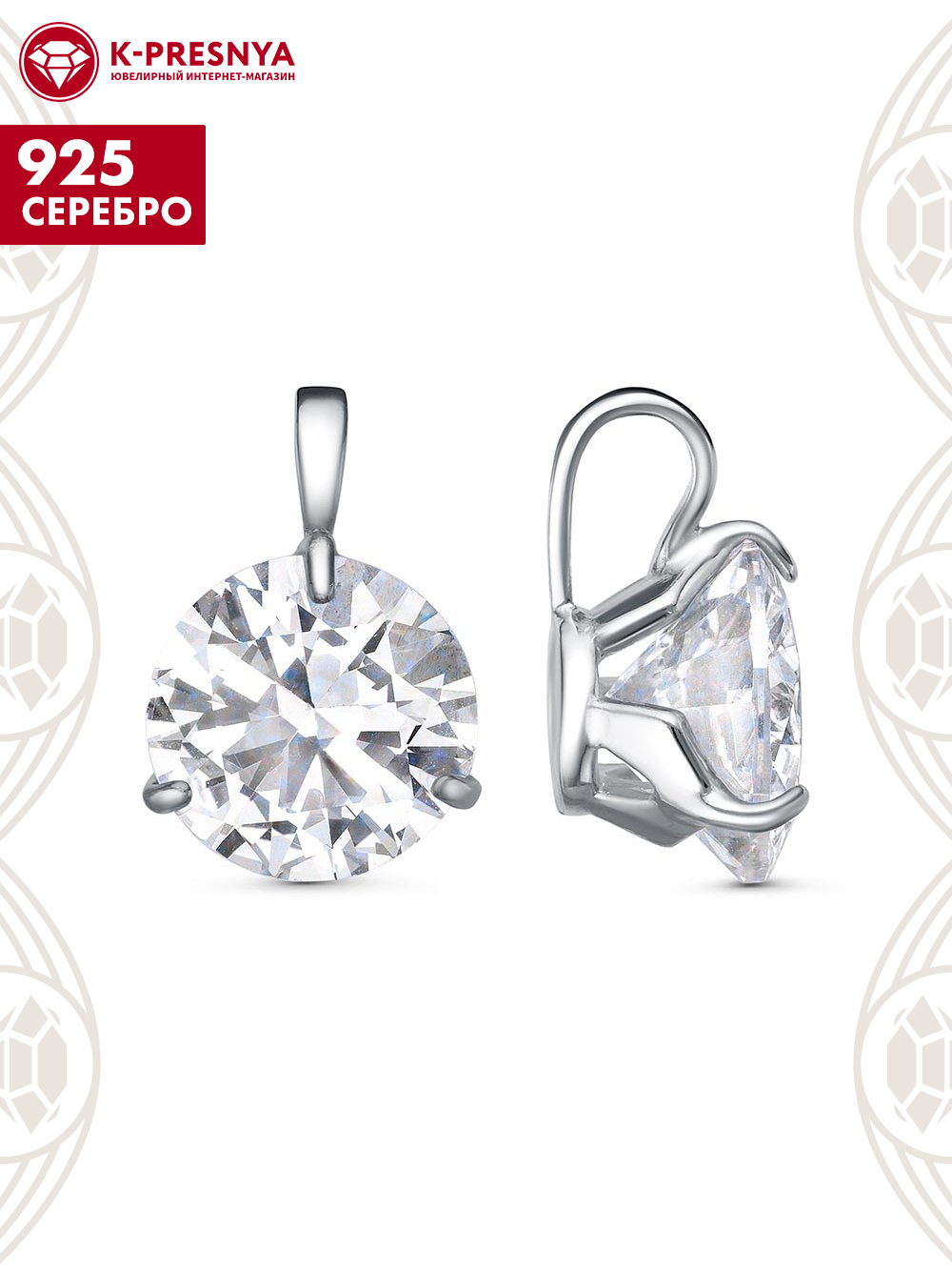 Подвеска серебро 925 пробы, покрытие - платинирование, вставка - горный хрусталь
