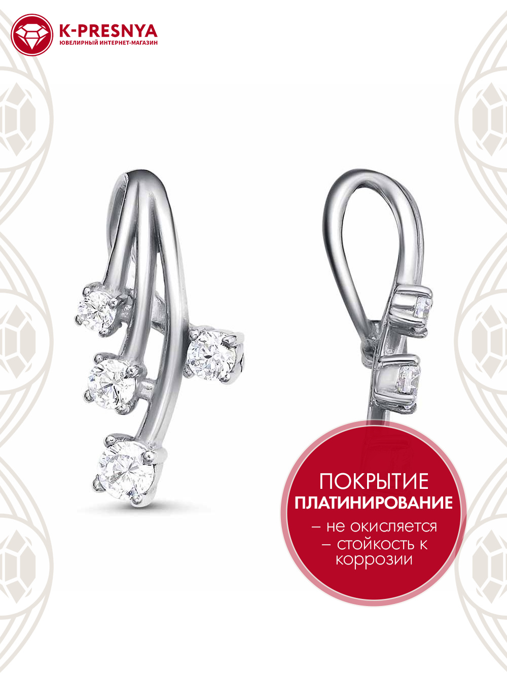 Подвеска бижутерия, покрытие - платинирование, вставка - фианит (недрагоценный камень)