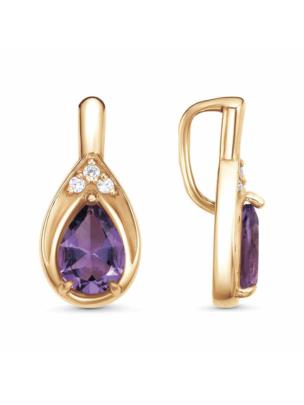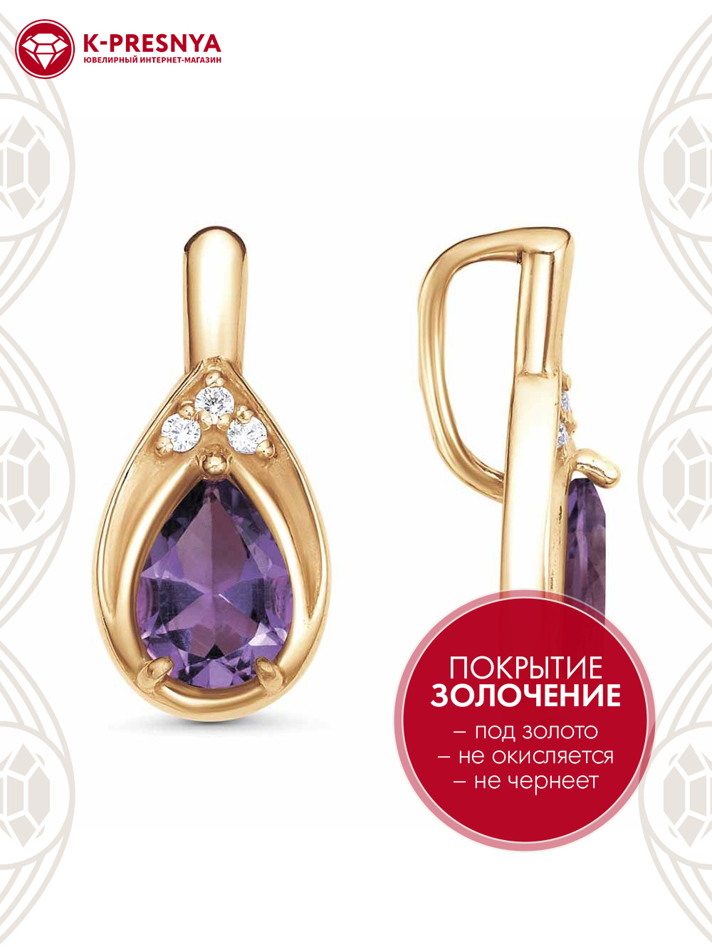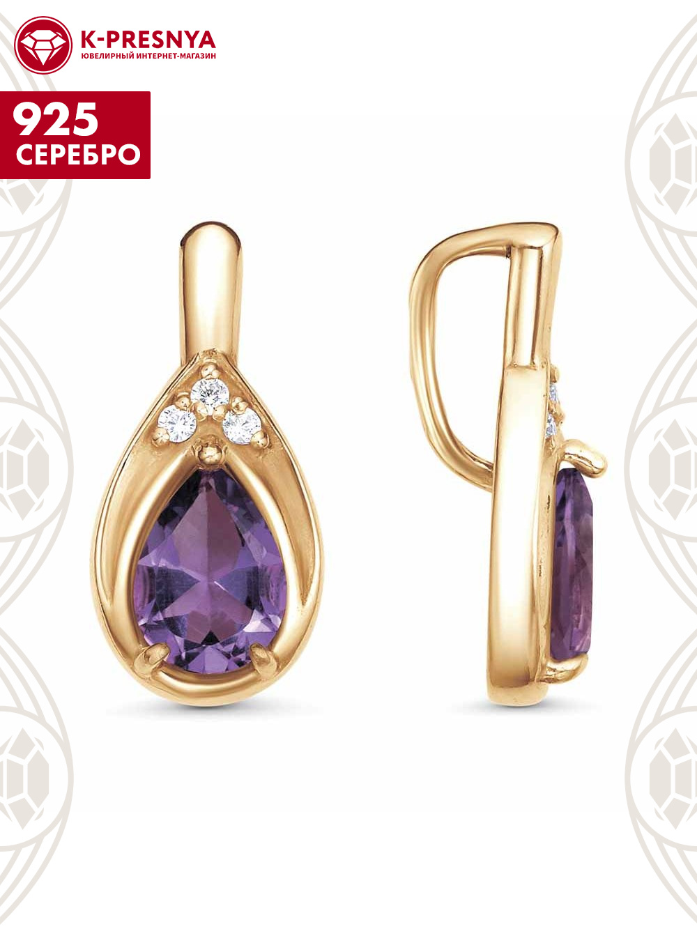 Подвеска серебро 925 пробы, покрытие - золочение, вставка - аметист (полудрагоценный камень), фианит (недрагоценный камень)