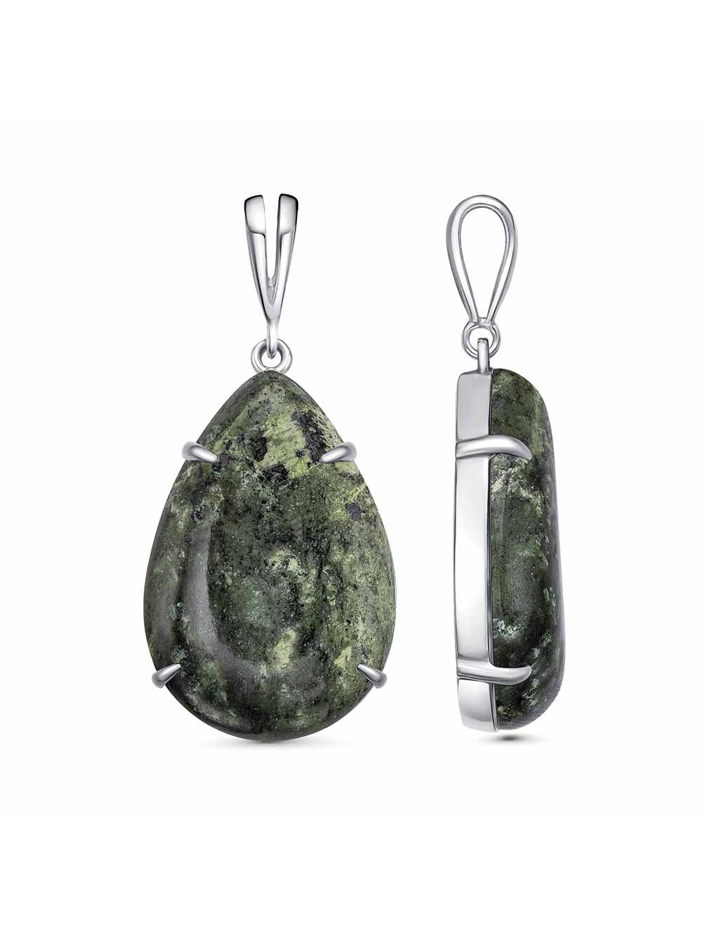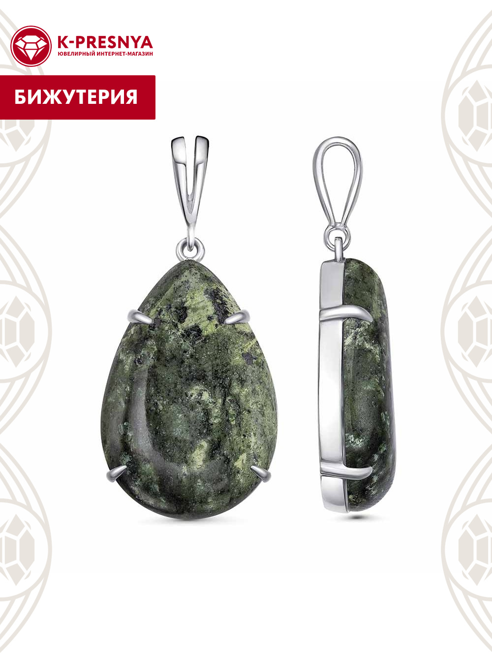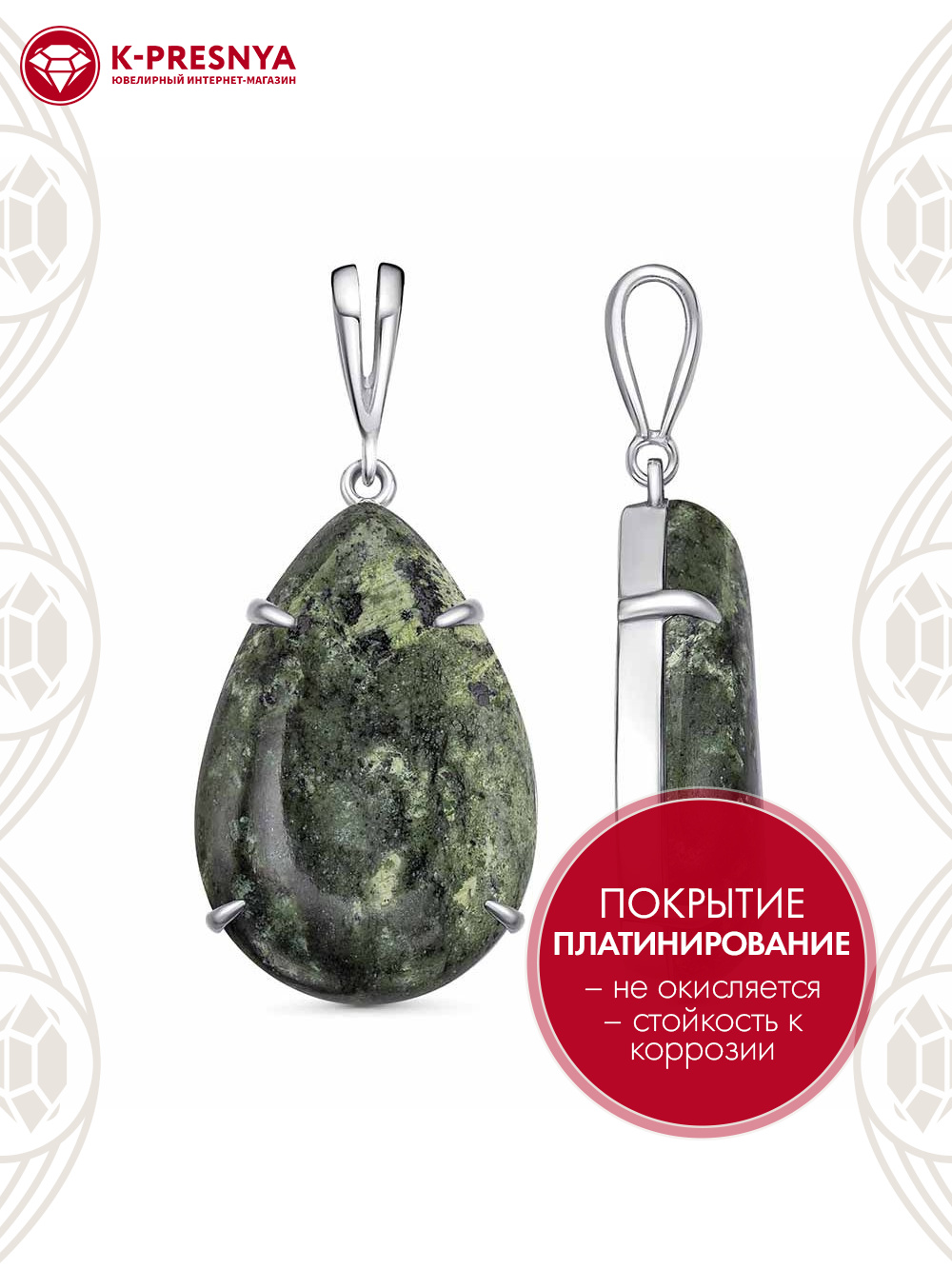 Подвеска бижутерия, покрытие - платинирование, вставка - змеевик