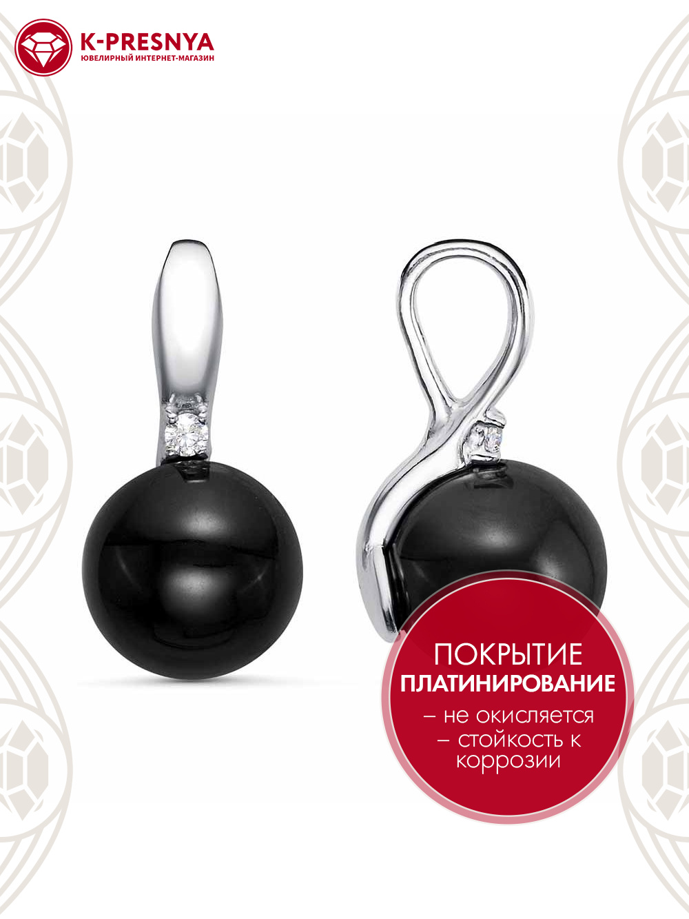 Подвеска бижутерия, покрытие - платинирование, вставка - имитация жемчуга, фианит (недрагоценный камень)