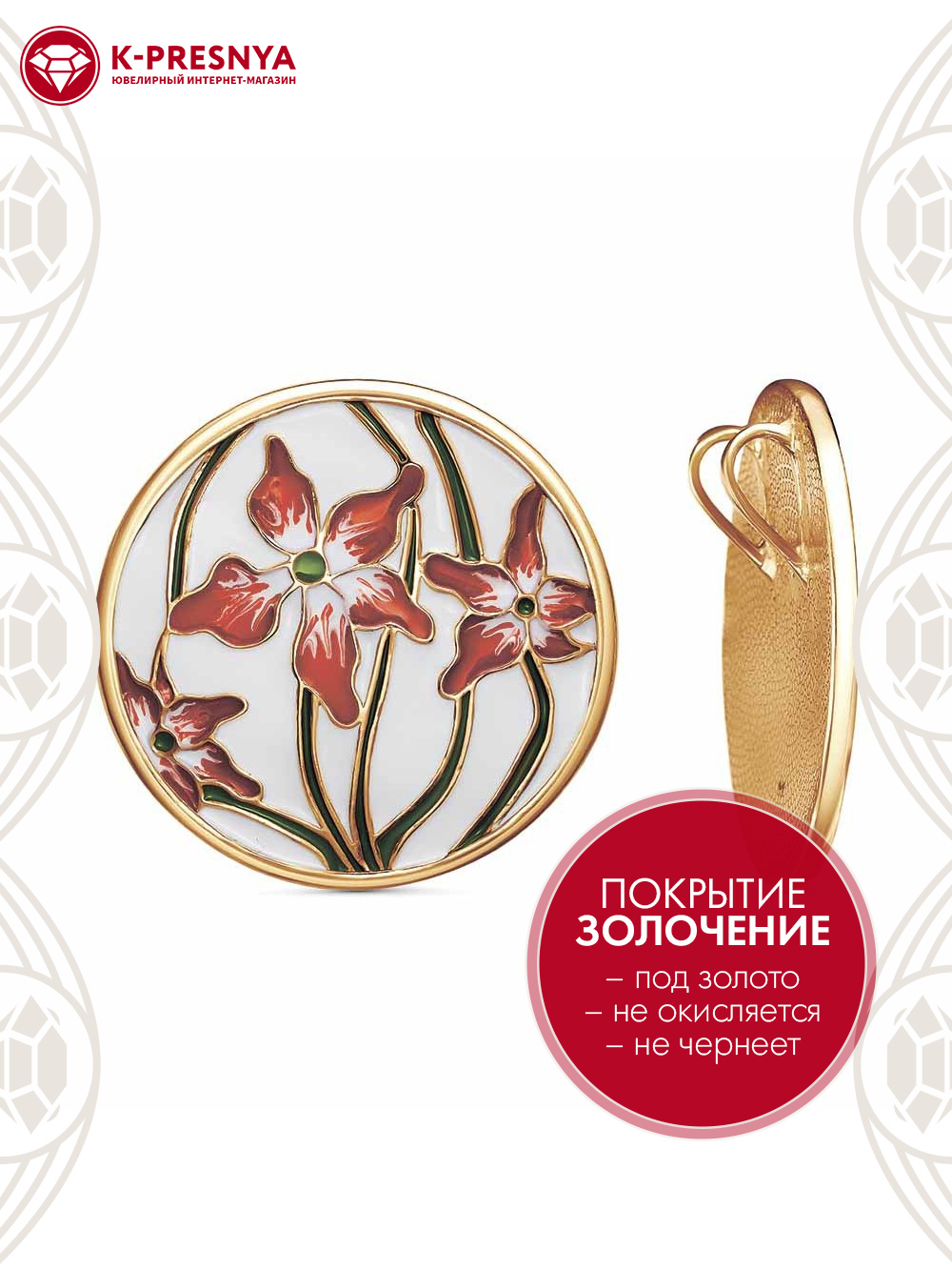 Подвеска бижутерия, покрытие - золочение, отделка - эмаль, без вставок