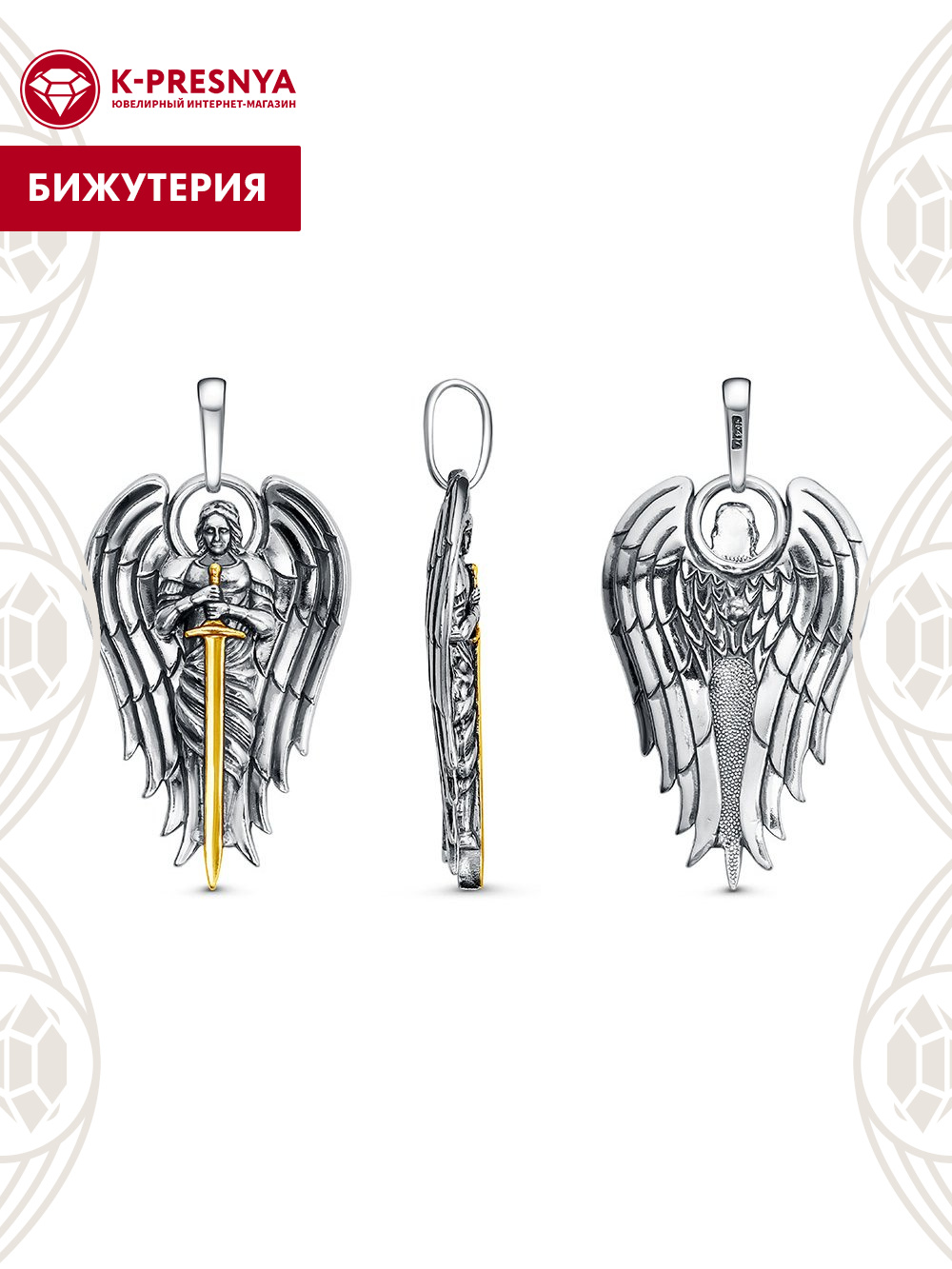 Подвеска бижутерия, покрытие - серебрение с оксидированием, выборочное золочение, без вставок