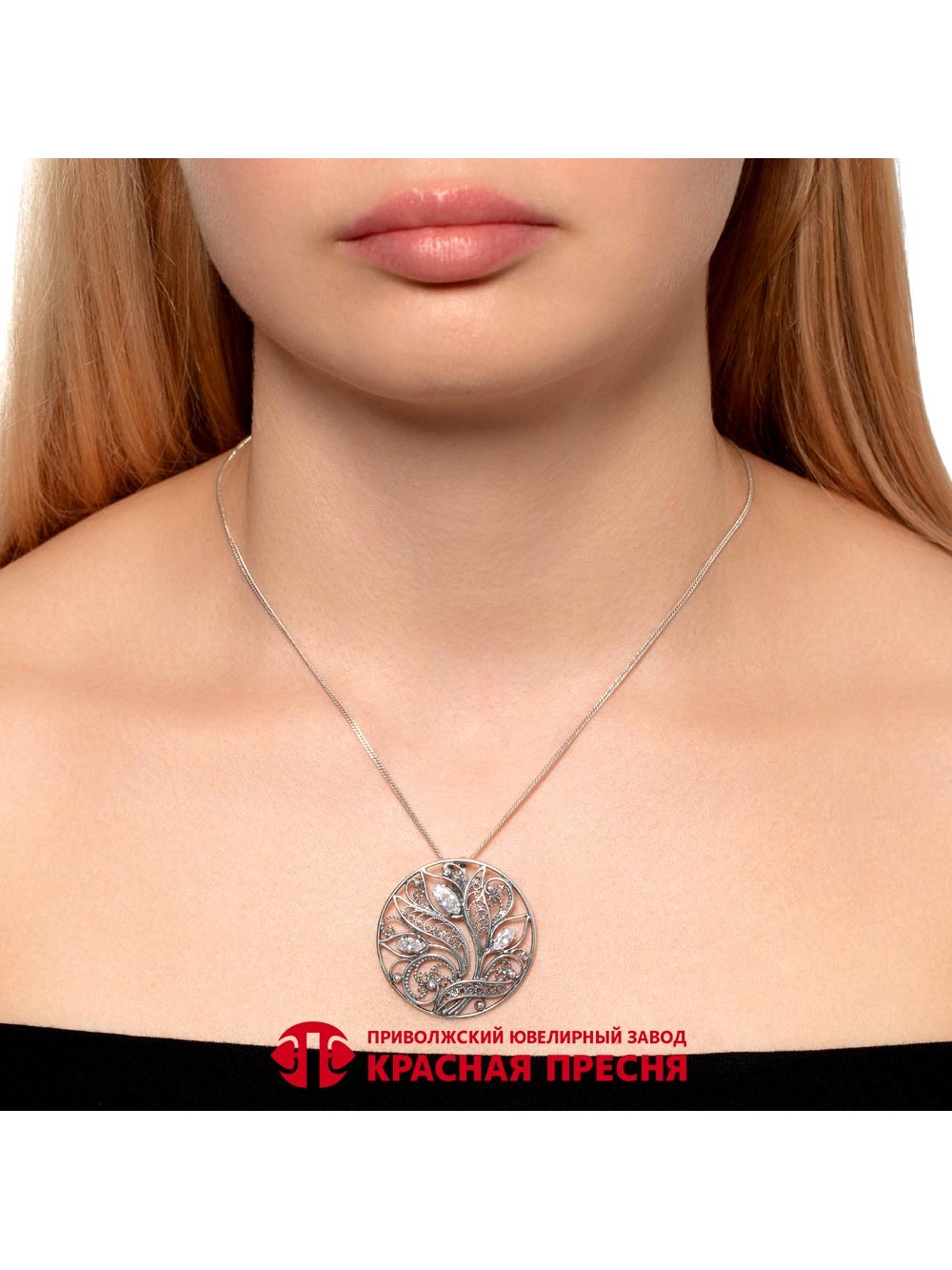 Подвеска бижутерия, покрытие - серебрение с оксидированием, вставка - фианит (недрагоценный камень)