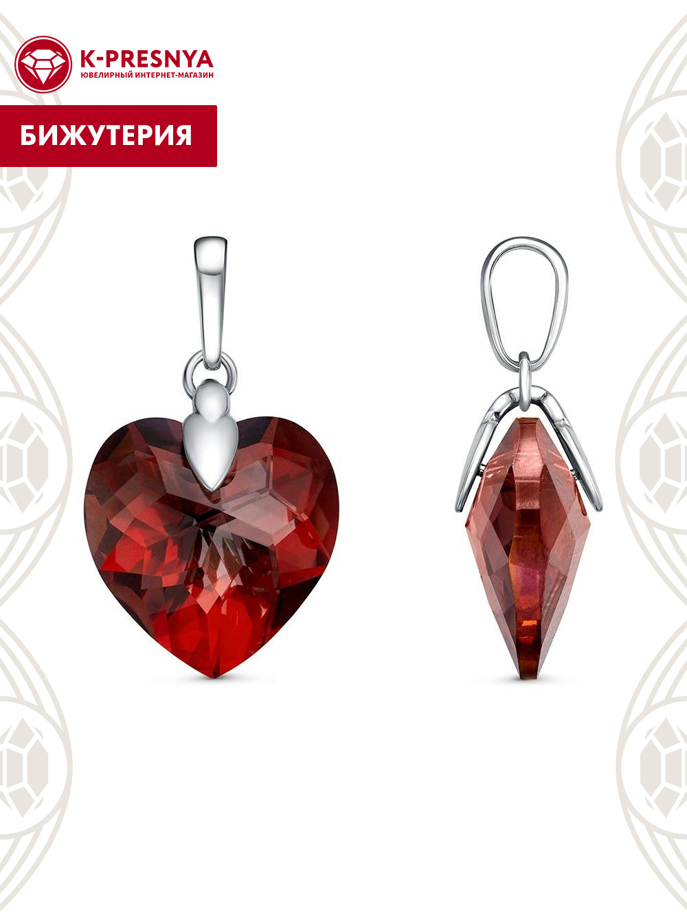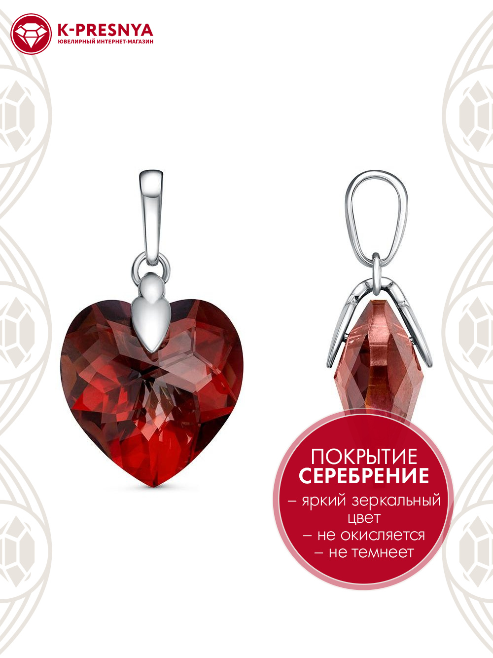Подвеска бижутерия, покрытие - серебрение с оксидированием, вставка - ювелирное стекло европейской огранки