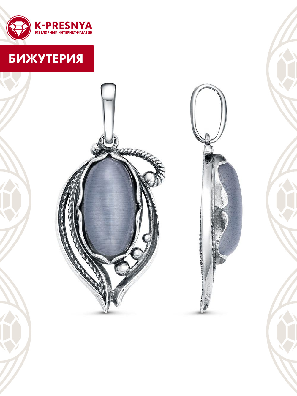 Подвеска бижутерия, покрытие - серебрение с оксидированием, вставка - искусственный кошачий глаз