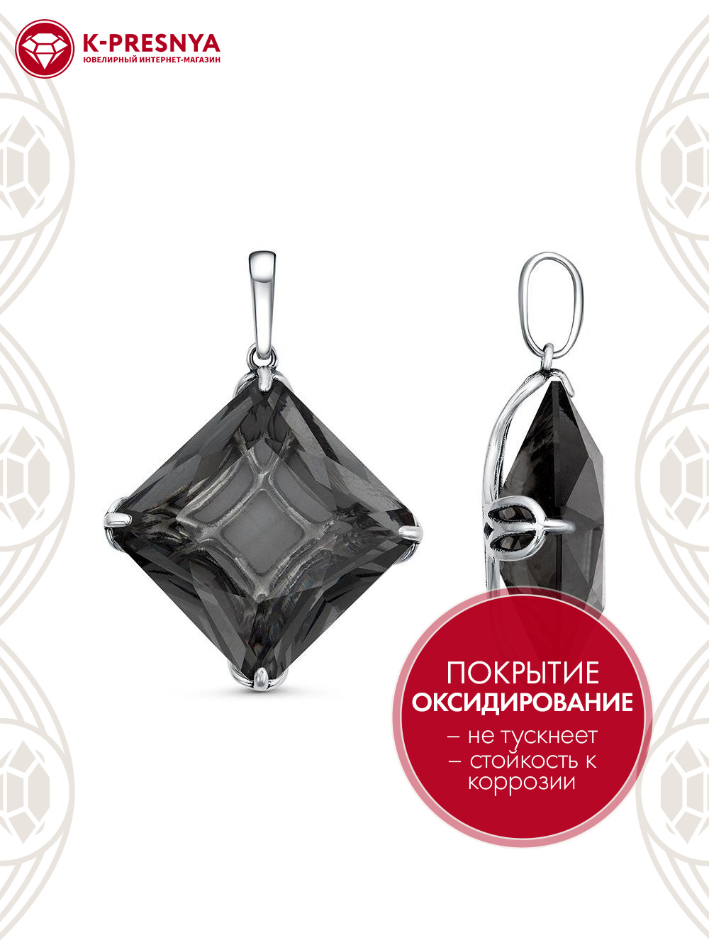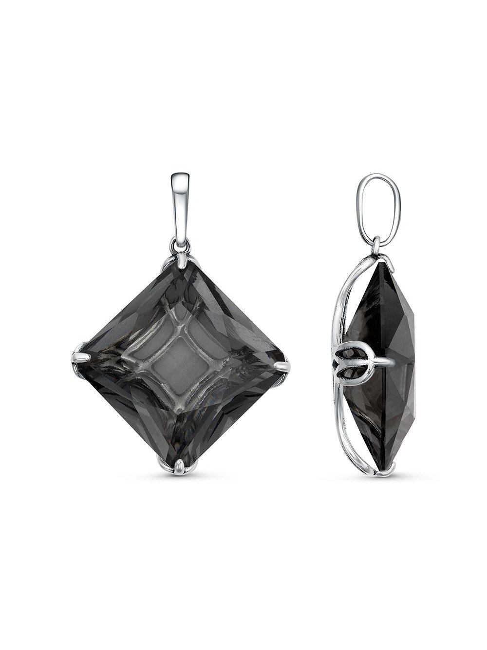Подвеска серебро 925 пробы, покрытие - оксидирование, вставка - дымчатый кварц (искусственный)