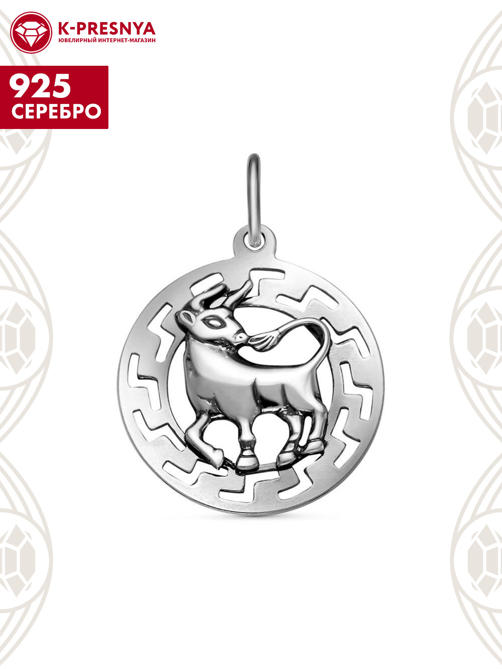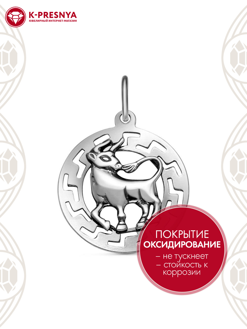 Подвеска "телец" серебро 925 пробы, покрытие - оксидирование, без вставок