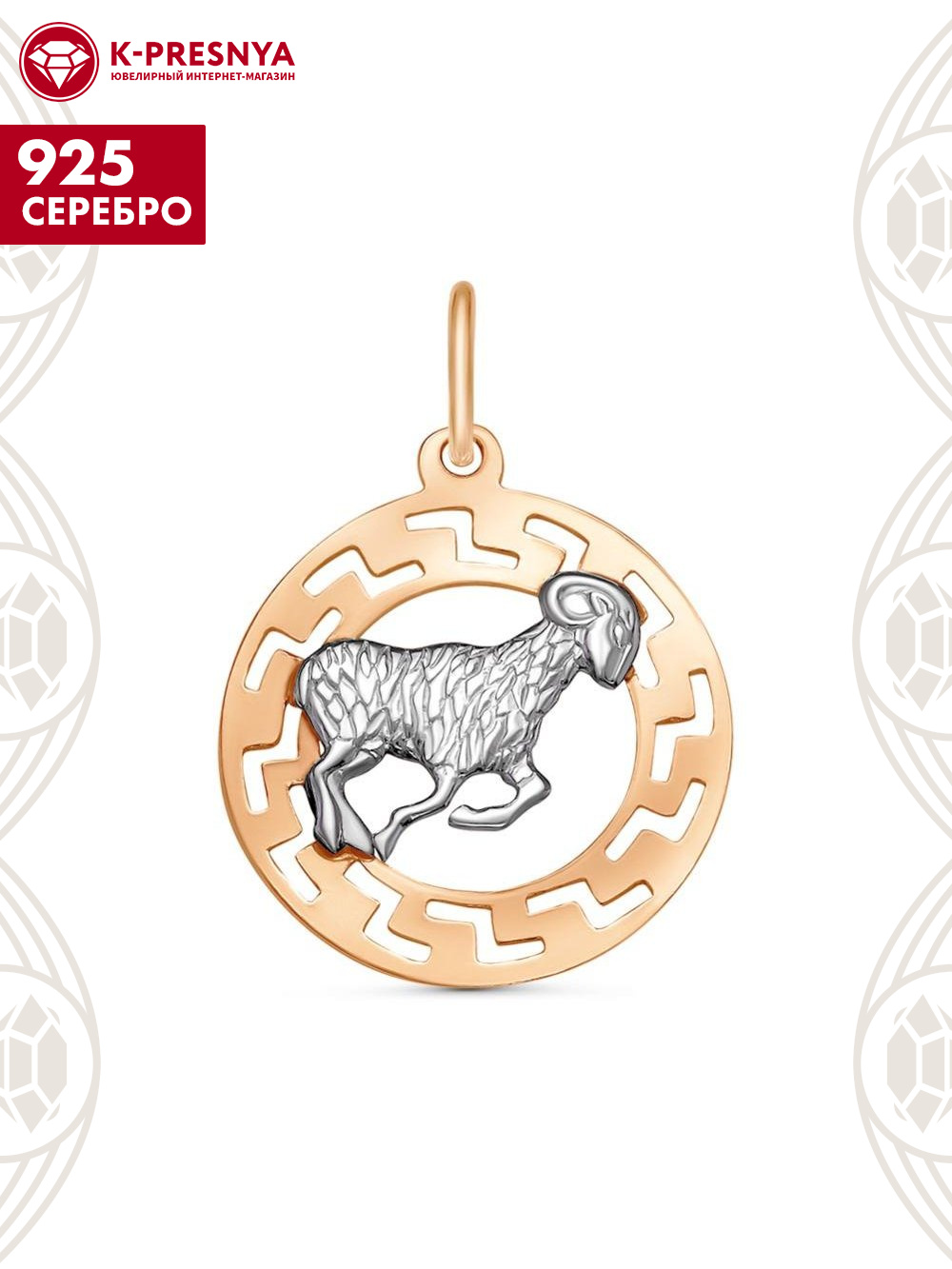 Подвеска "овен" серебро 925 пробы, покрытие - золочение, выборочное родирование, без вставок