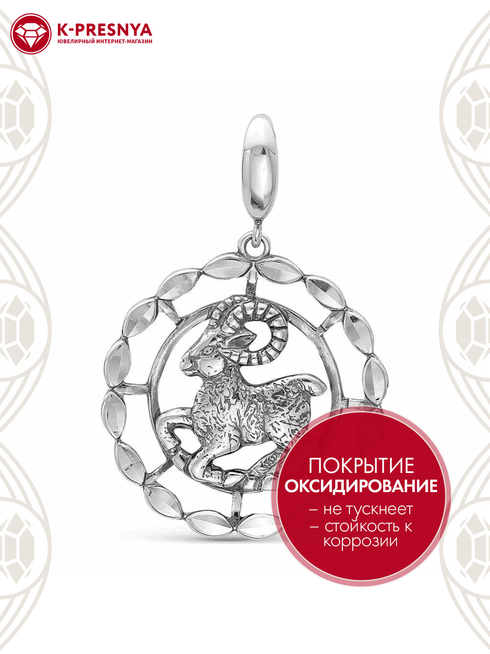 Подвеска "овен" серебро 925 пробы, покрытие - оксидирование, отделка - алмазная грань, без вставок