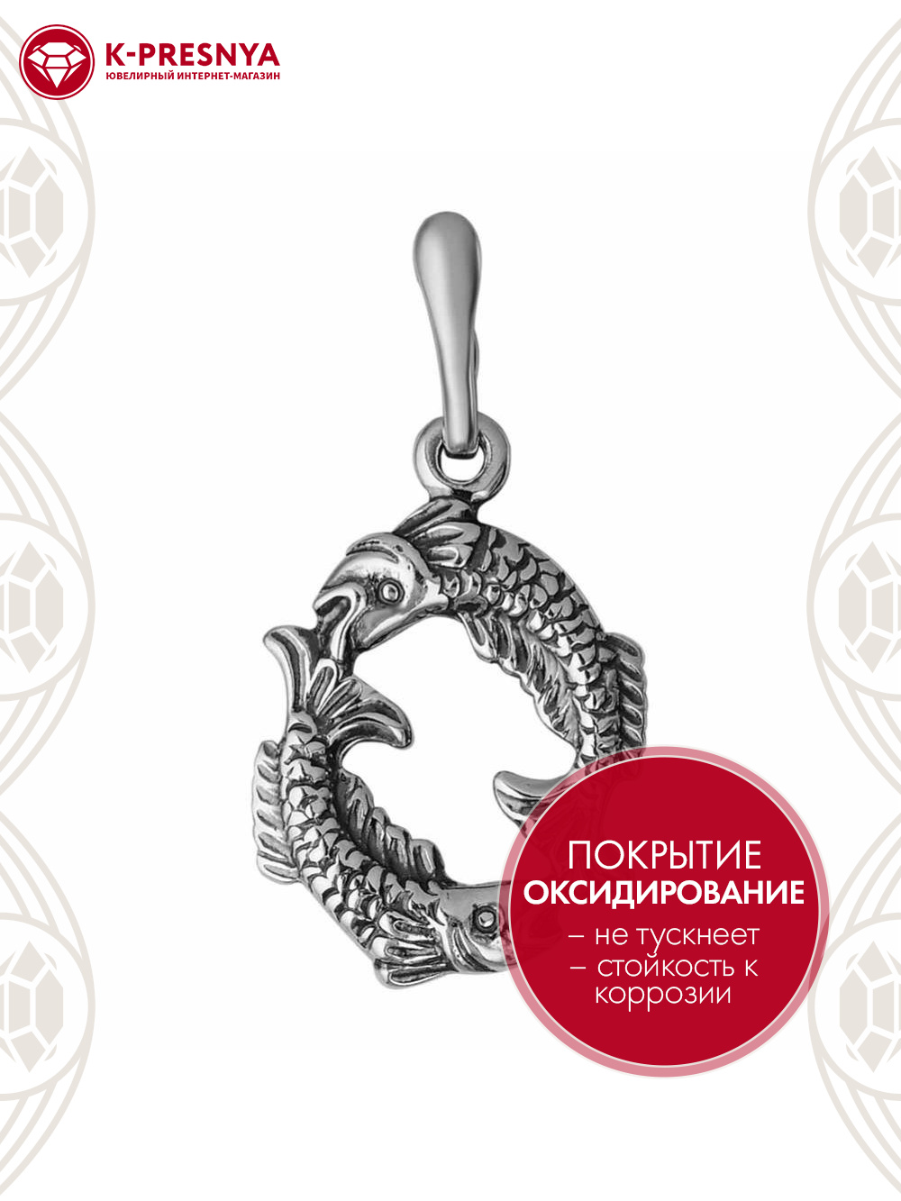 Подвеска"рыба" серебро 925 пробы, покрытие - оксидирование, без вставок