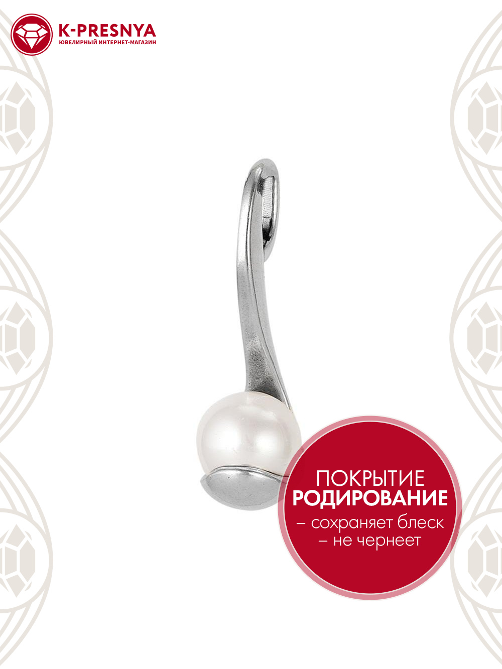 Подвеска серебро 925 пробы, покрытие - родирование, вставка - имитация жемчуга