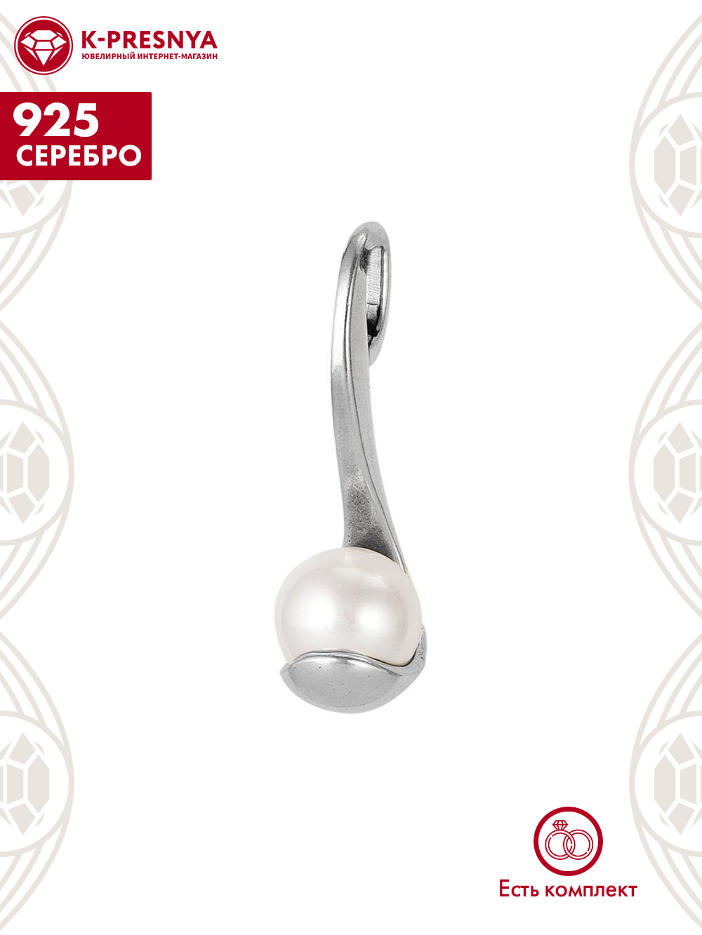 Серьги серебро 925 пробы, покрытие - родирование, вставка - имитация жемчуга |