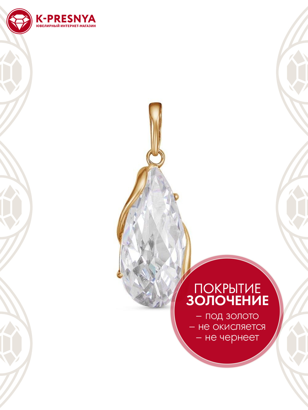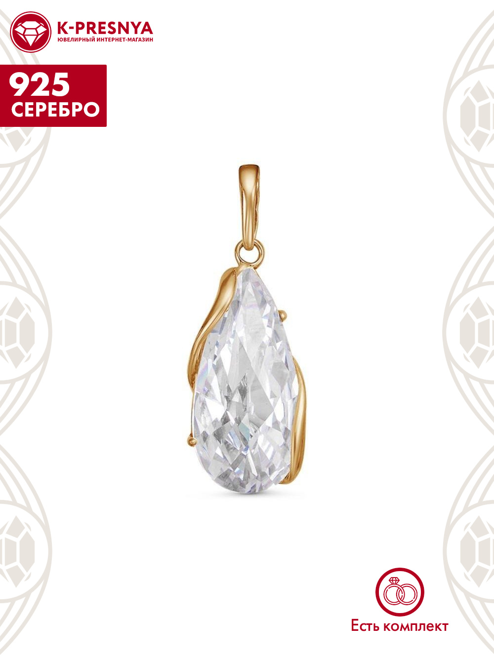 Подвеска серебро 925 пробы, покрытие - золочение, вставка - фианит собственной огранки (недрагоценный камень)