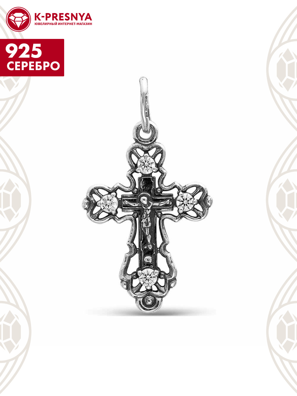 Подвеска серебро 925 пробы, покрытие - оксидирование, вставка - фианит (недрагоценный камень)