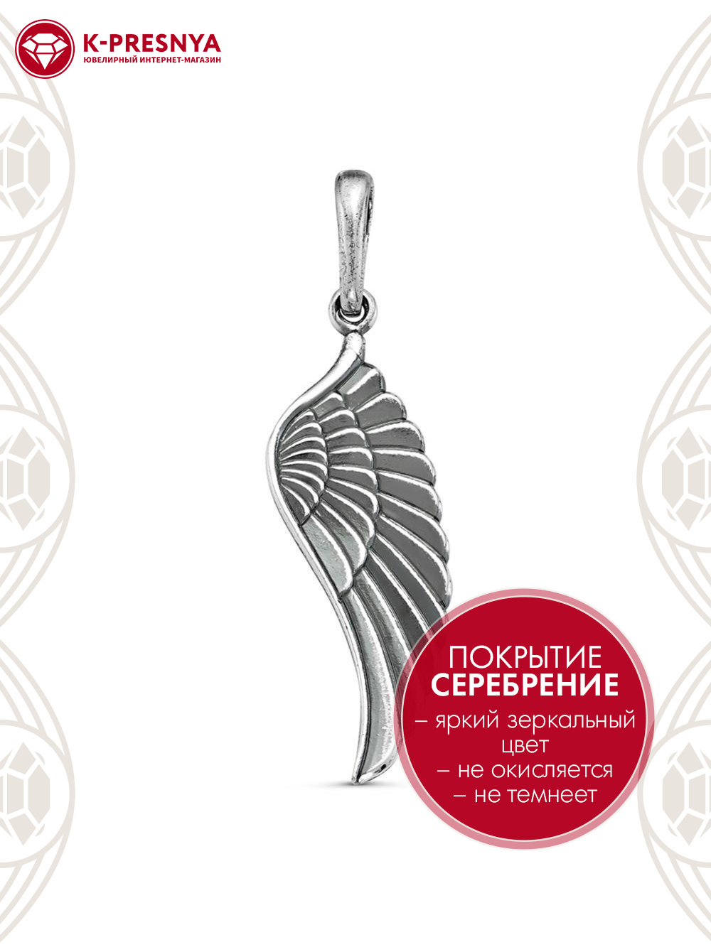 Подвеска "Крыло ангела" - олицетворяет любовь, преданность и дружбу. Символ полета и одухотворенности. Особенно символично приобрести пару крыльев: для себя и для любимого человека. Влюбленные показывают тем самым друг другу то, что в их верности и надёжности не нужно сомневаться.