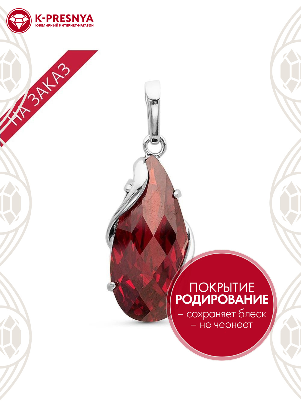Подвеска серебро 925 пробы, покрытие - родирование, вставка - фианит собственной огранки (недрагоценный камень)