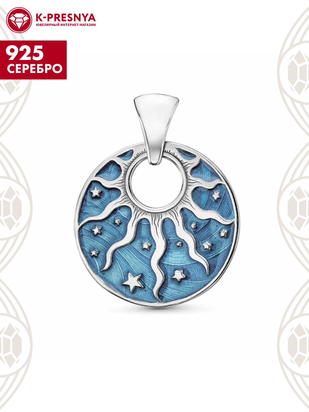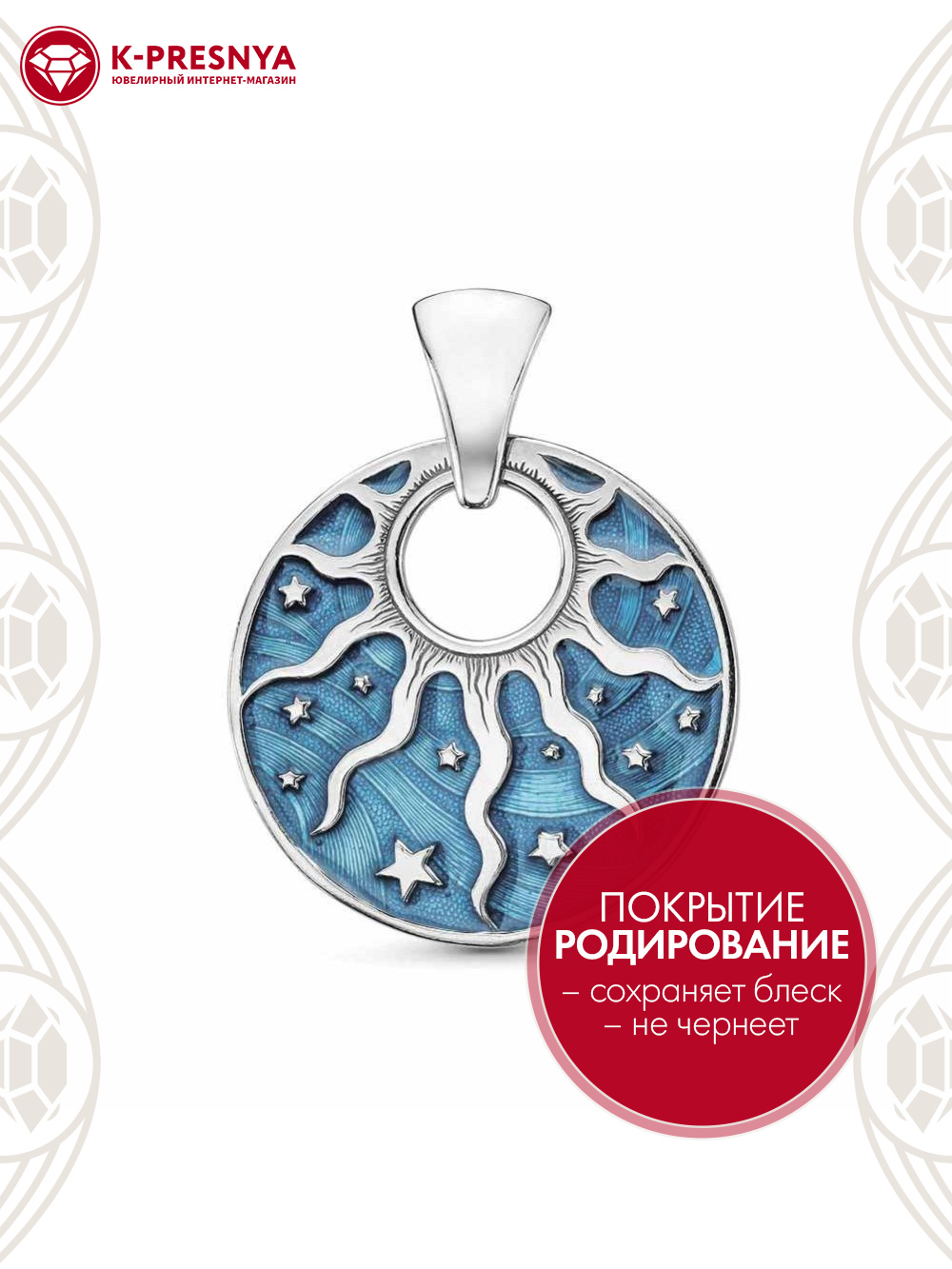 Подвеска серебро 925 пробы, покрытие - родирование, отделка - эмаль, без вставок
