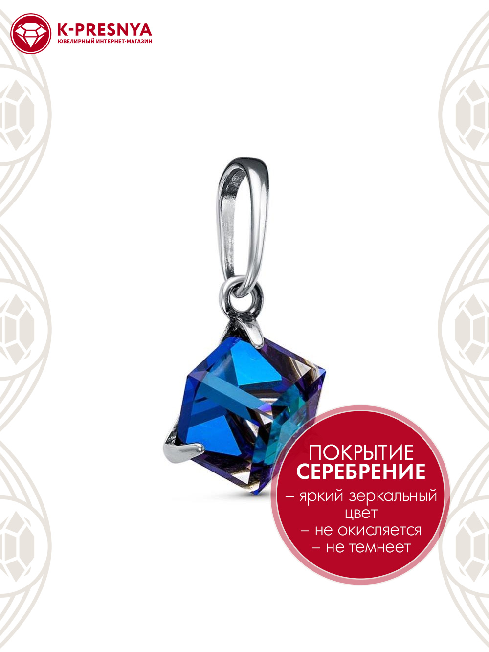 Подвеска бижутерия, покрытие - серебрение с оксидированием, вставка - ювелирное стекло европейской огранки