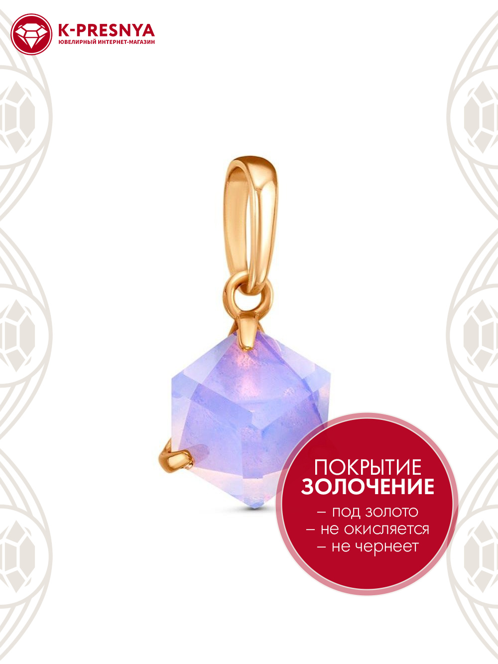 Подвеска серебро 925 пробы, покрытие - золочение, вставка - стекло ювелирное собственной огранки