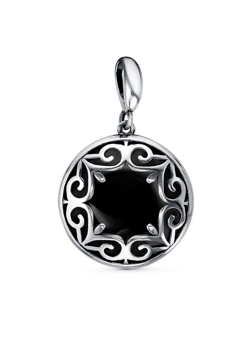 Подвеска бижутерия, покрытие - серебрение с оксидированием, вставка - стекло ювелирное собственной огранки