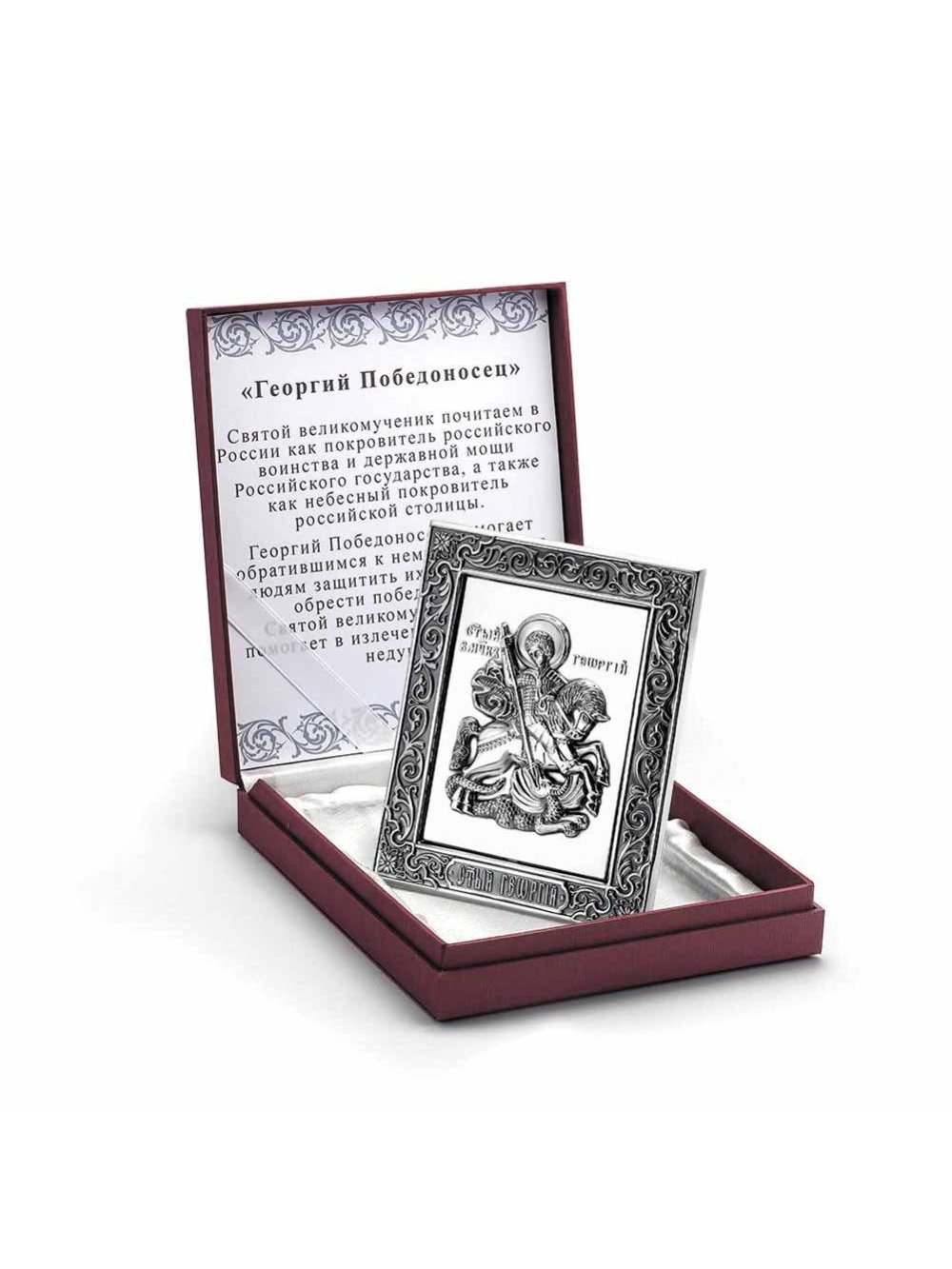 Икона "георгий победоносец" серебро 925 пробы, покрытие - оксидирование, без вставок