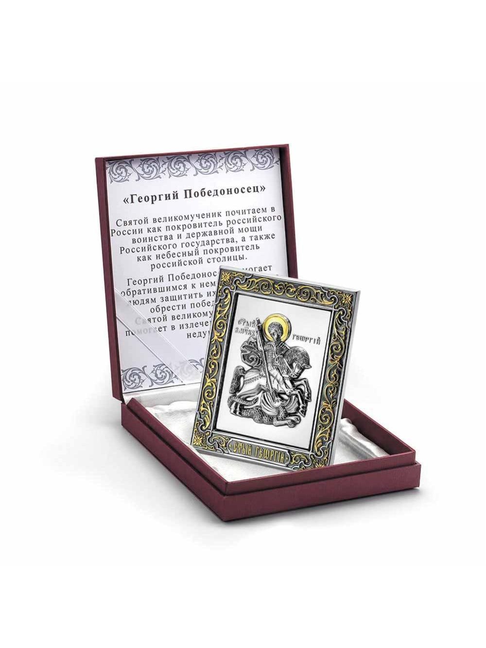 Икона "георгий победоносец" серебро 925 пробы, покрытие - оксидирование, выборочное золочение, без вставок