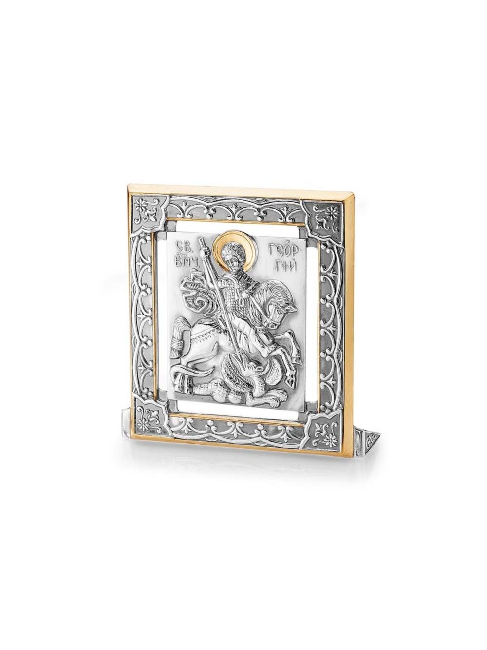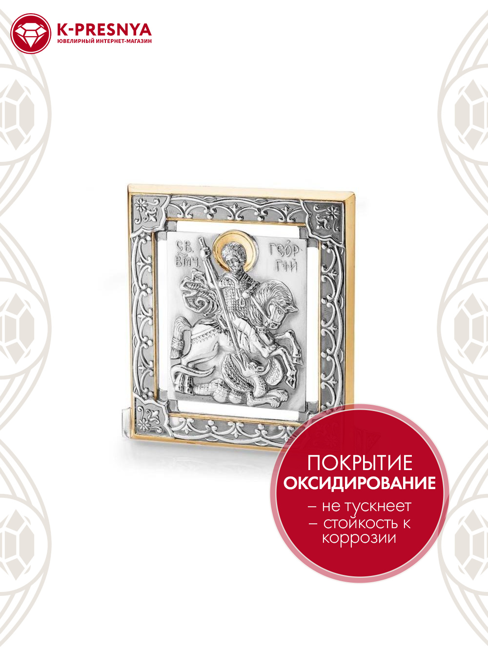 Икона "георгий победоносец" серебро 925 пробы, покрытие - оксидирование, выборочное золочение, без вставок