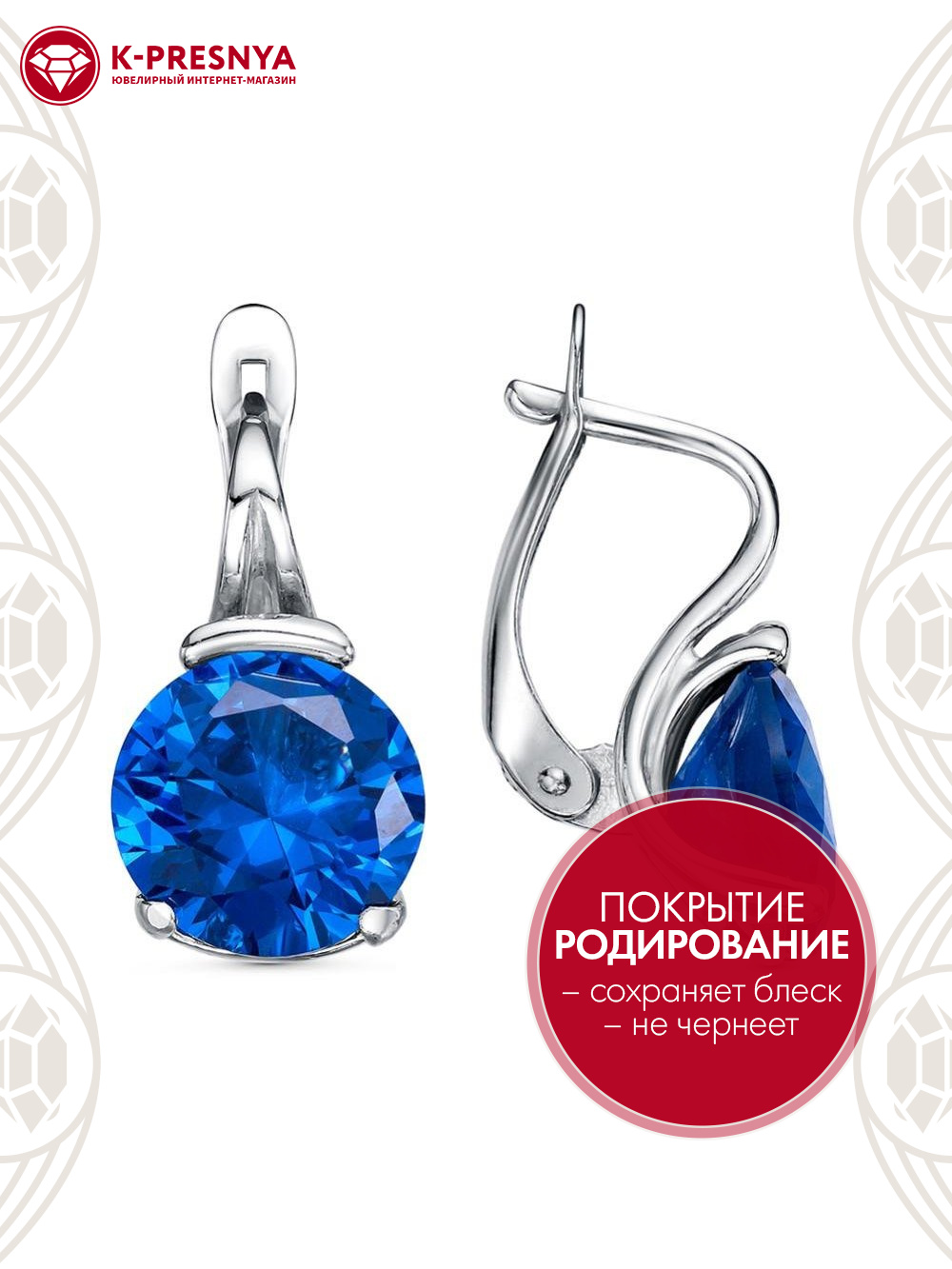 Серьги серебро 925 пробы, покрытие - родирование, вставка - искусственная шпинель