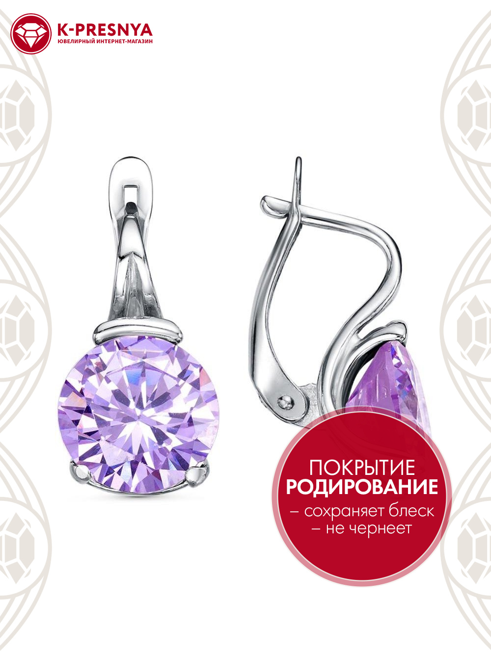Серьги серебро 925 пробы, покрытие - родирование, вставка - фианит (недрагоценный камень)