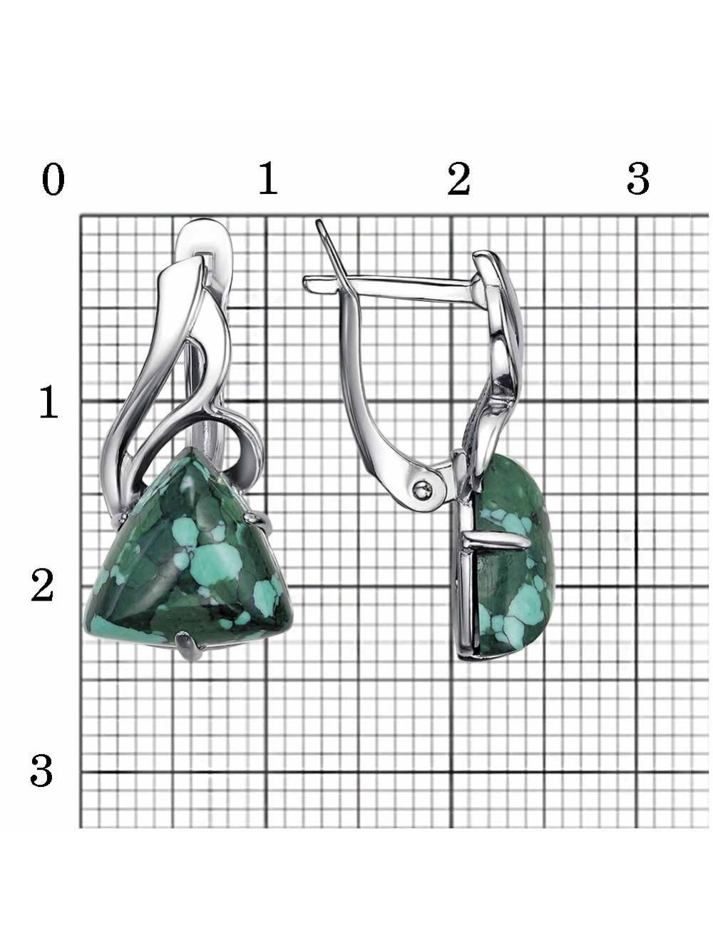 Серьги бижутерия, покрытие - серебрение с оксидированием, вставка - искусственный малахит