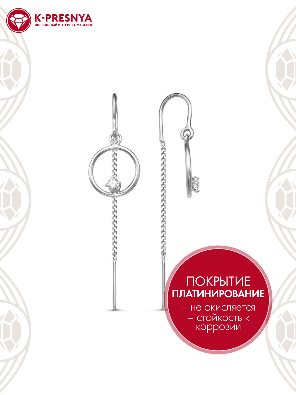 Серьги бижутерия, покрытие - платинирование, вставка - фианит (недрагоценный камень)