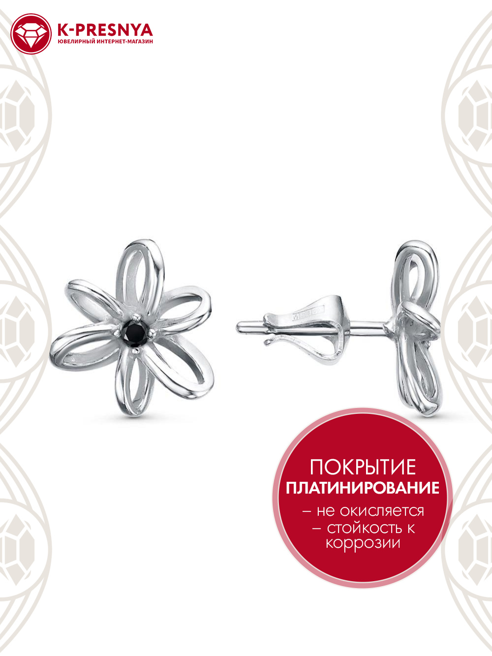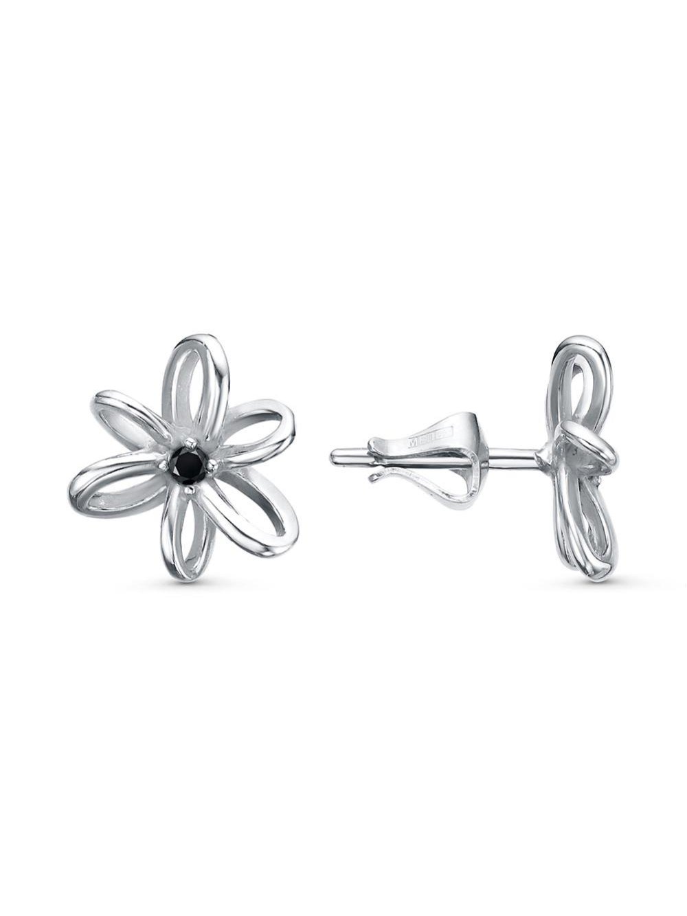 Серьги серебро 925 пробы, покрытие - платинирование, вставка - фианит (недрагоценный камень)