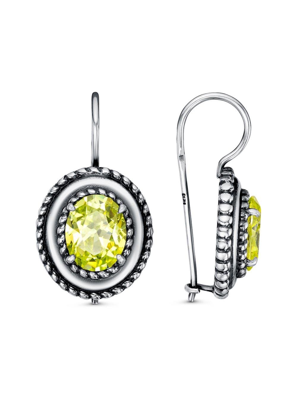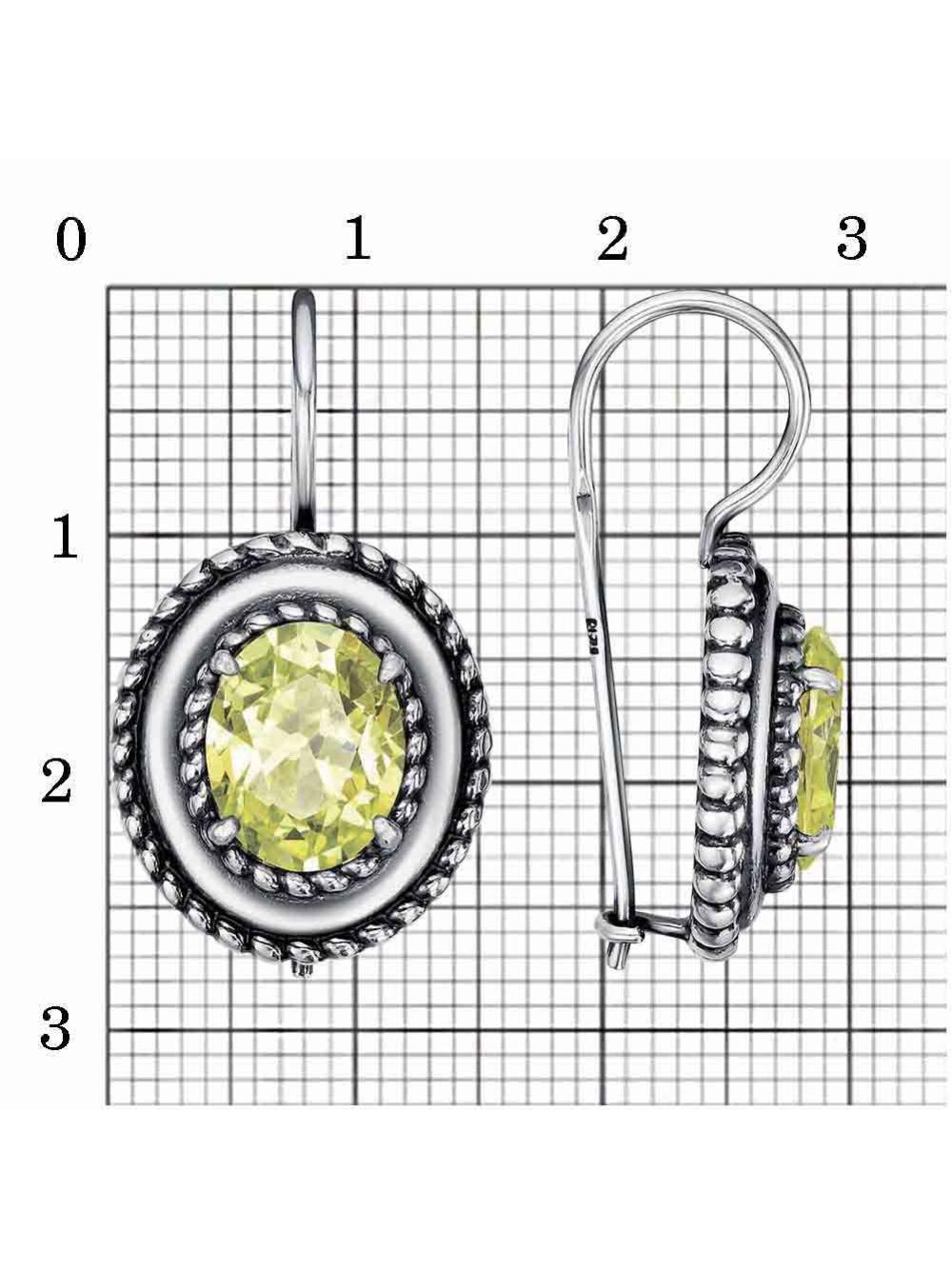 Серьги бижутерия, покрытие - серебрение с оксидированием, вставка - фианит (недрагоценный камень)