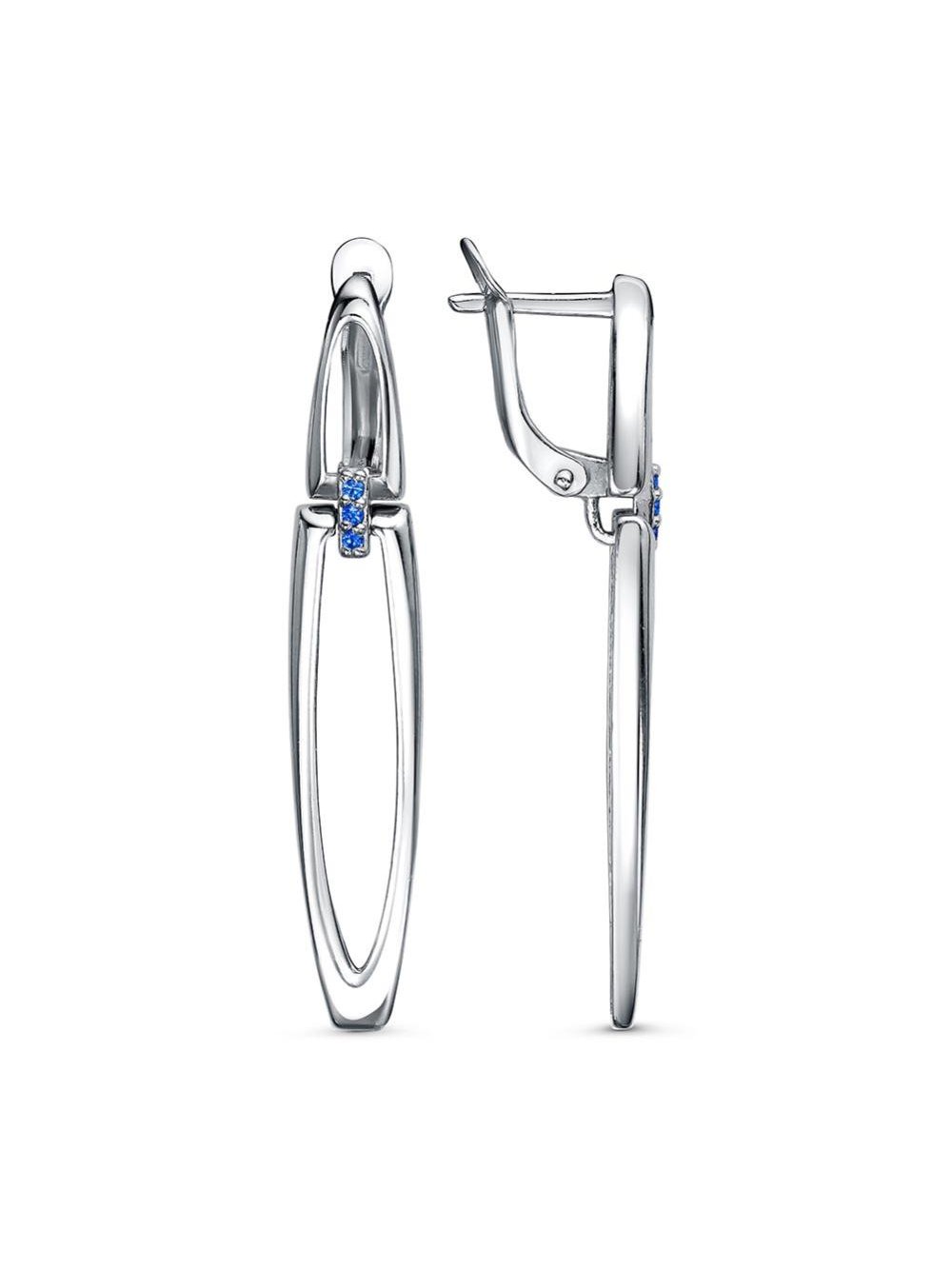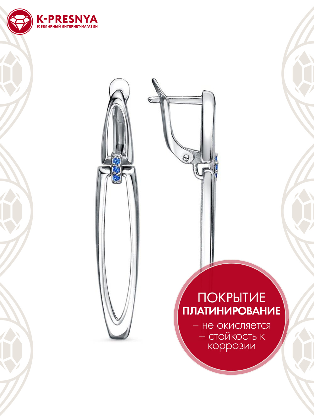 Серьги серебро 925 пробы, покрытие - платинирование, вставка - искусственная шпинель
