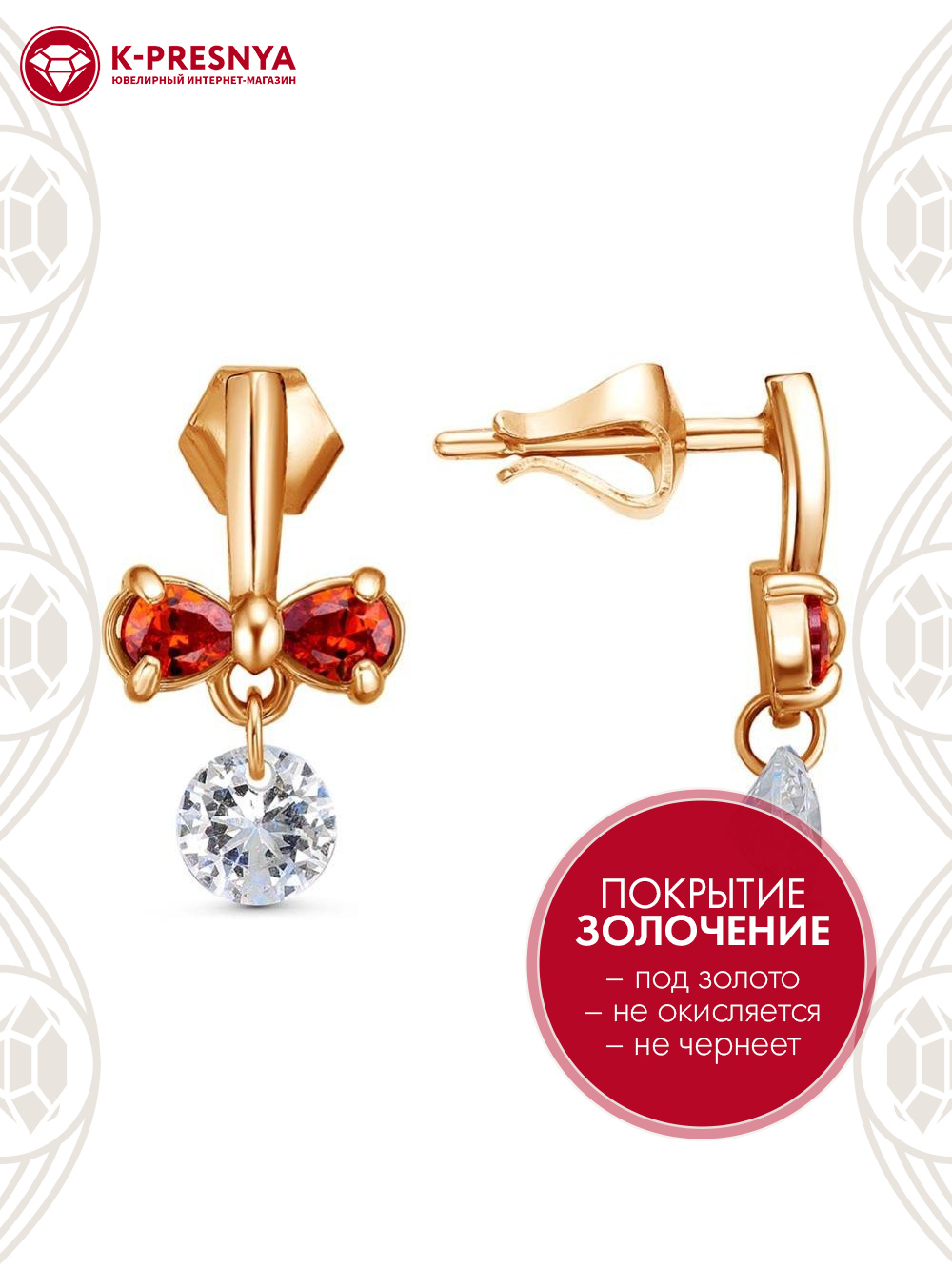 Серьги бижутерия, покрытие - золочение, вставка - фианит (недрагоценный камень)