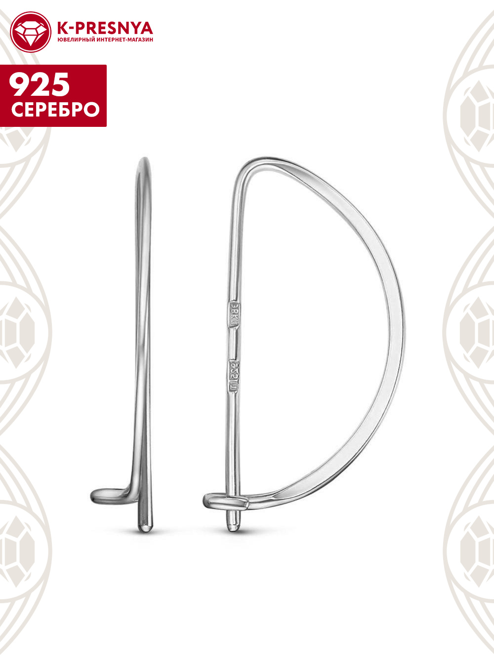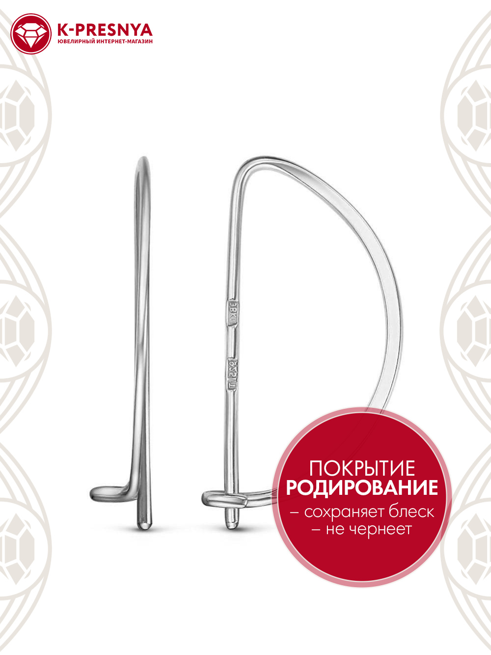 Серьги серебро 925 пробы, покрытие - родирование, без вставок