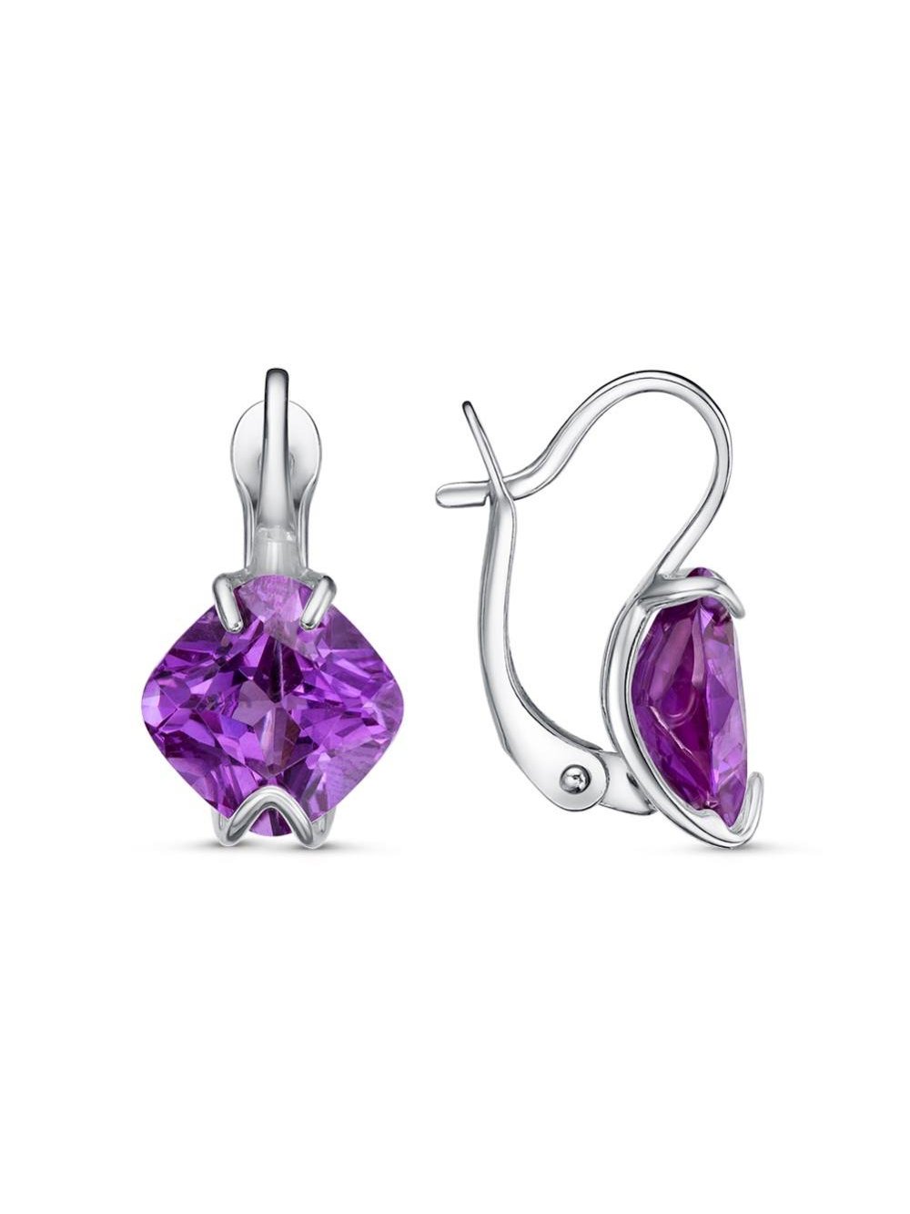 Серьги серебро 925 пробы, покрытие - платинирование, вставка - фианит (недрагоценный камень)