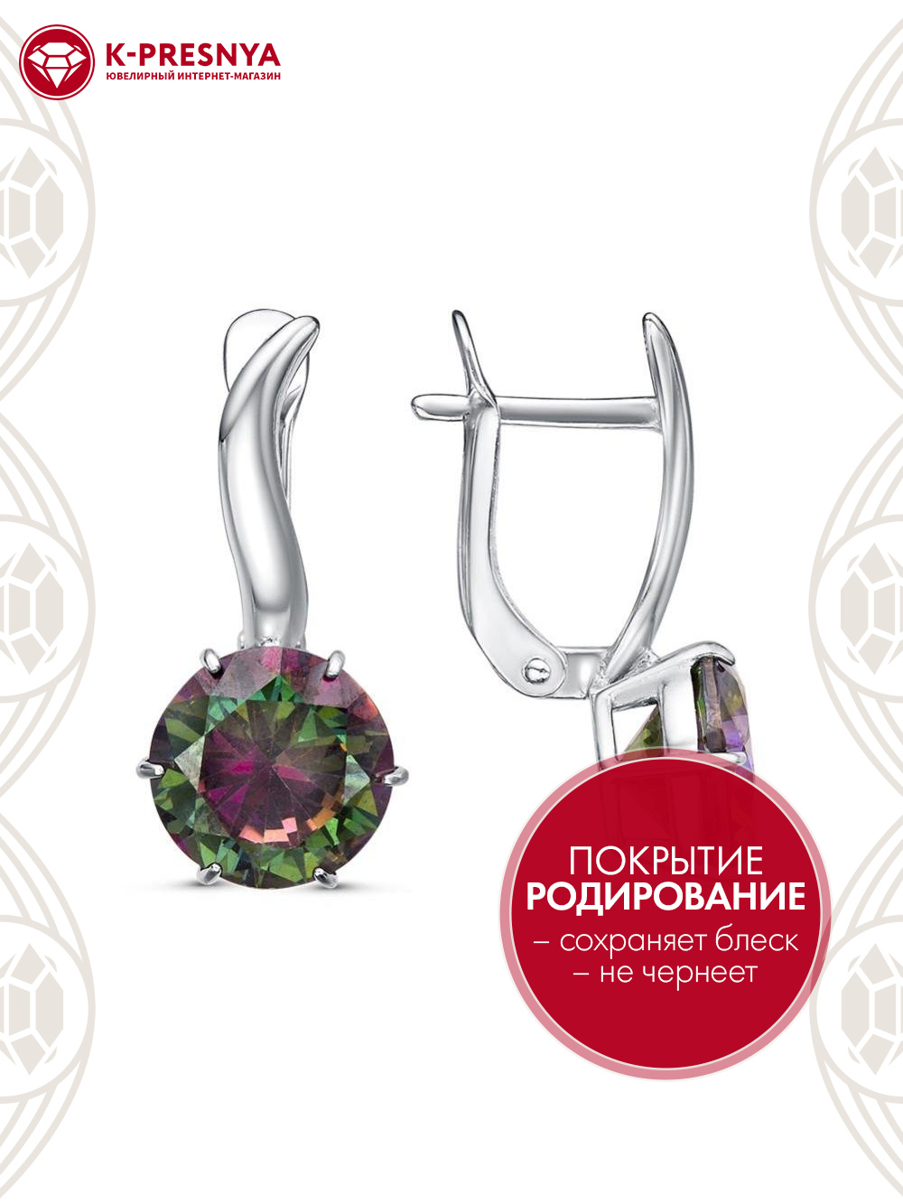 Серьги серебро 925 пробы, покрытие - родирование, вставка - фианит (недрагоценный камень)
