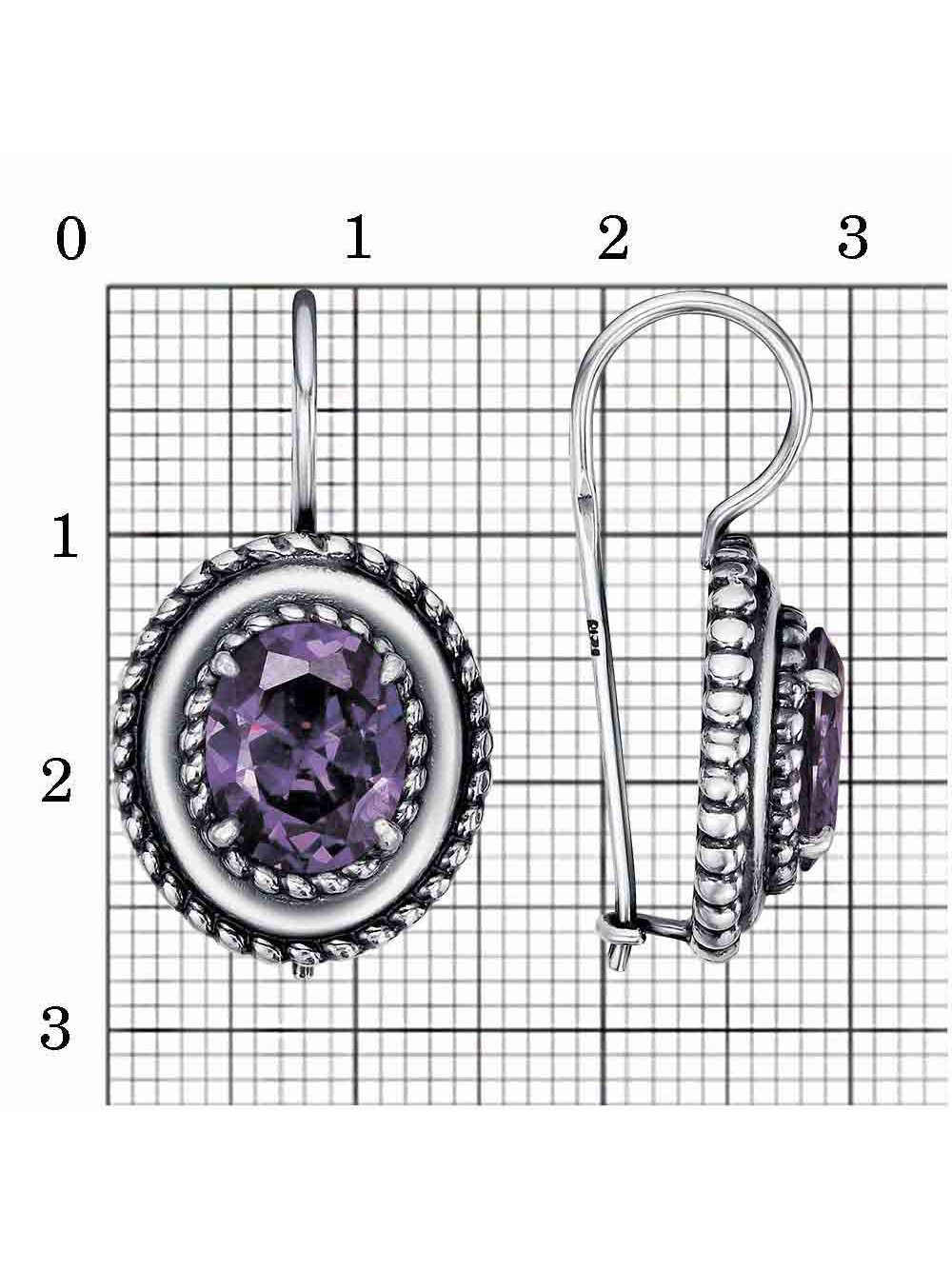 Серьги бижутерия, покрытие - серебрение с оксидированием, вставка - фианит (недрагоценный камень)