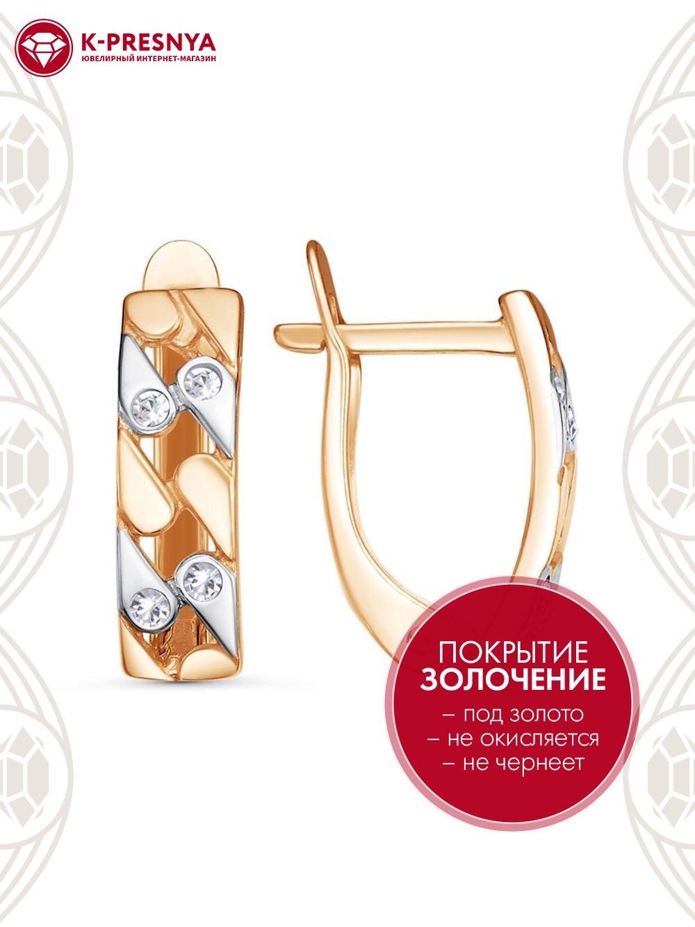 Серьги бижутерия, покрытие - золочение, выборочное родирование, вставка - стекло ювелирное preciosa