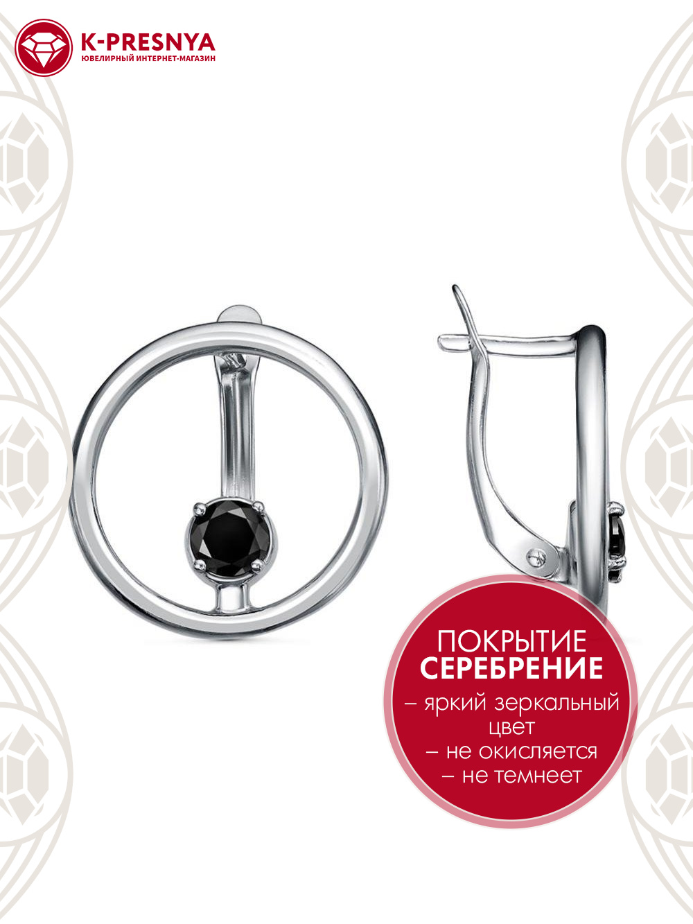 Серьги бижутерия, покрытие - серебрение с оксидированием, вставка - фианит (недрагоценный камень)