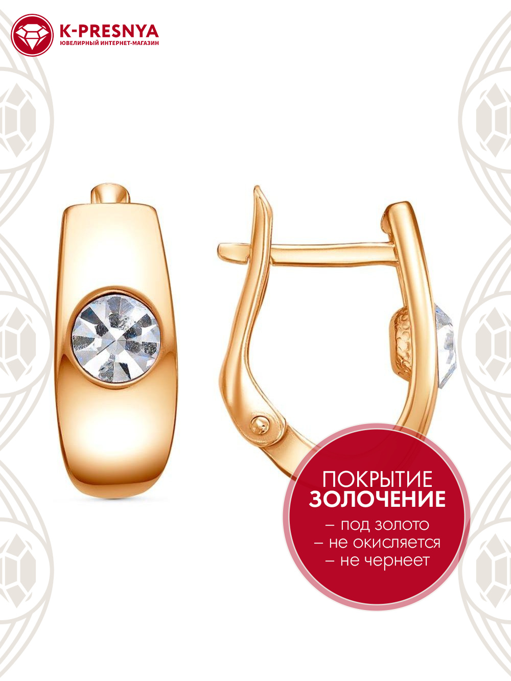 Серьги серебро 925 пробы, покрытие - золочение, вставка - стекло ювелирное preciosa