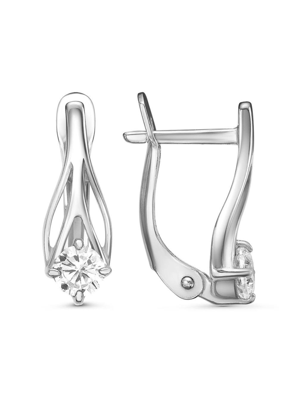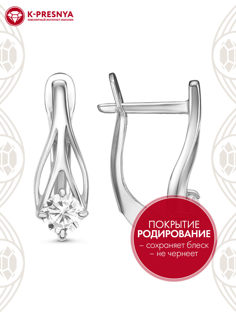 Серьги серебро 925 пробы, покрытие - родирование, вставка - фианит (недрагоценный камень)