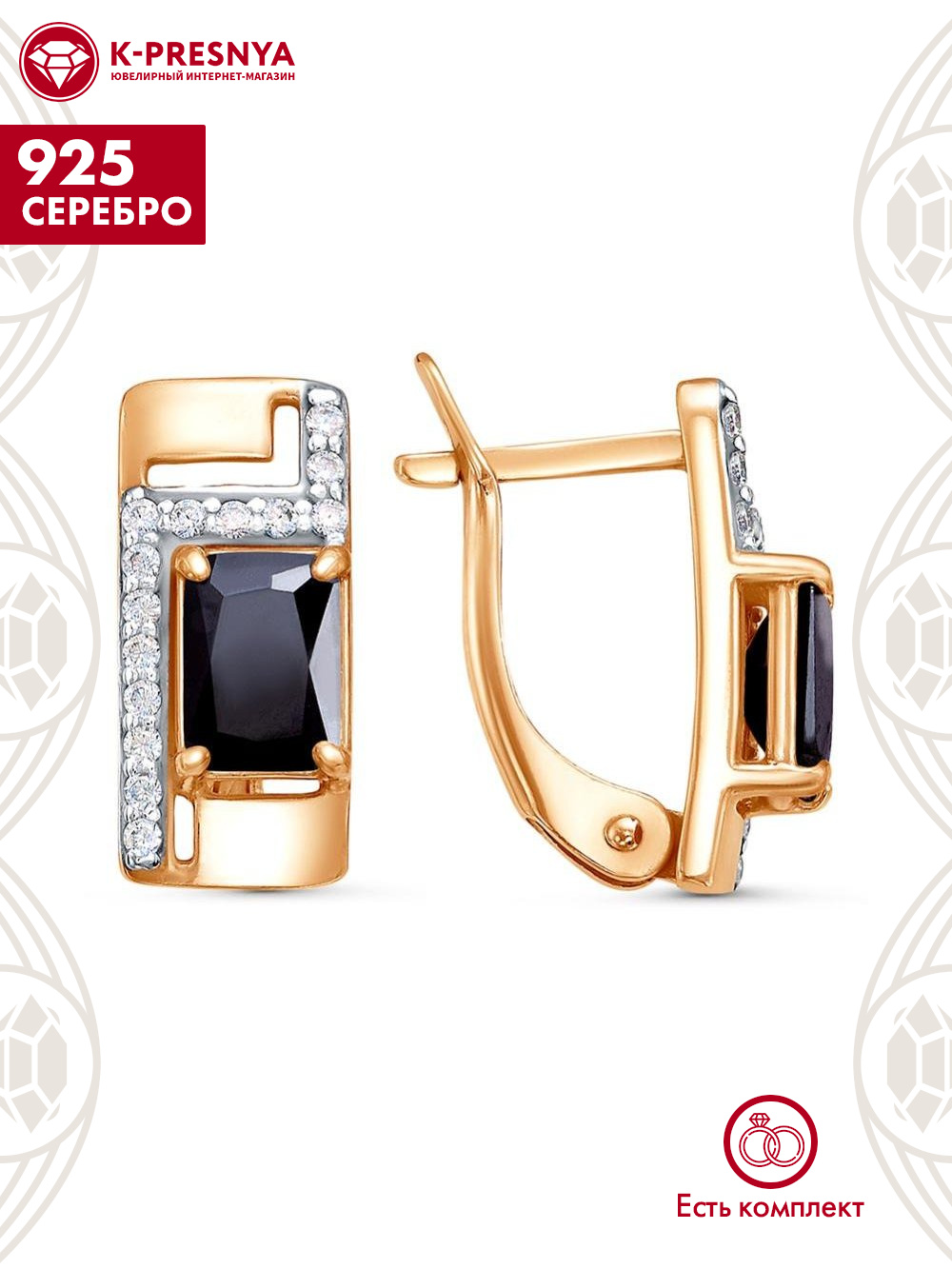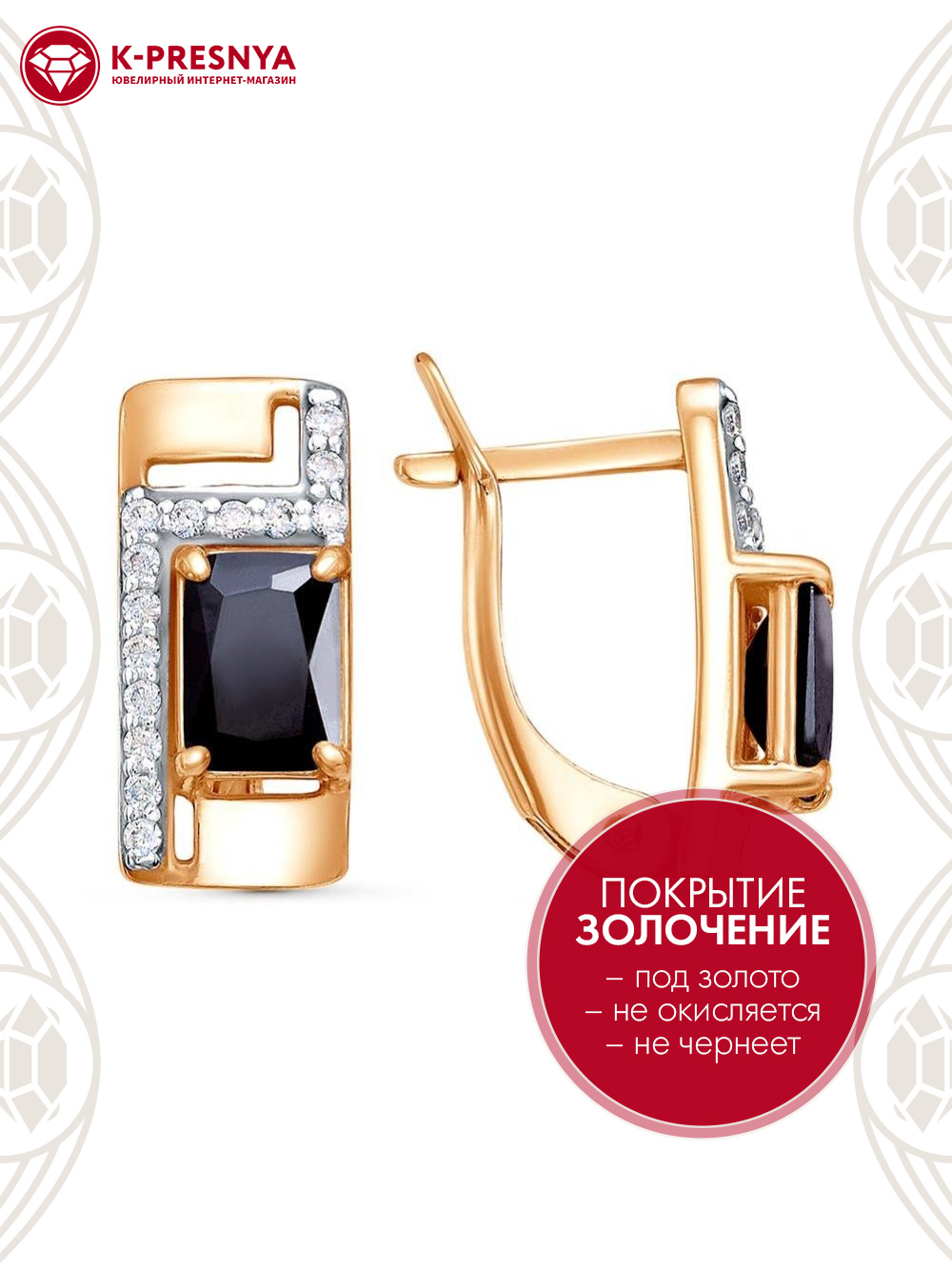 Серьги серебро 925 пробы, покрытие - золочение, выборочное родирование, вставка - фианит (недрагоценный камень)