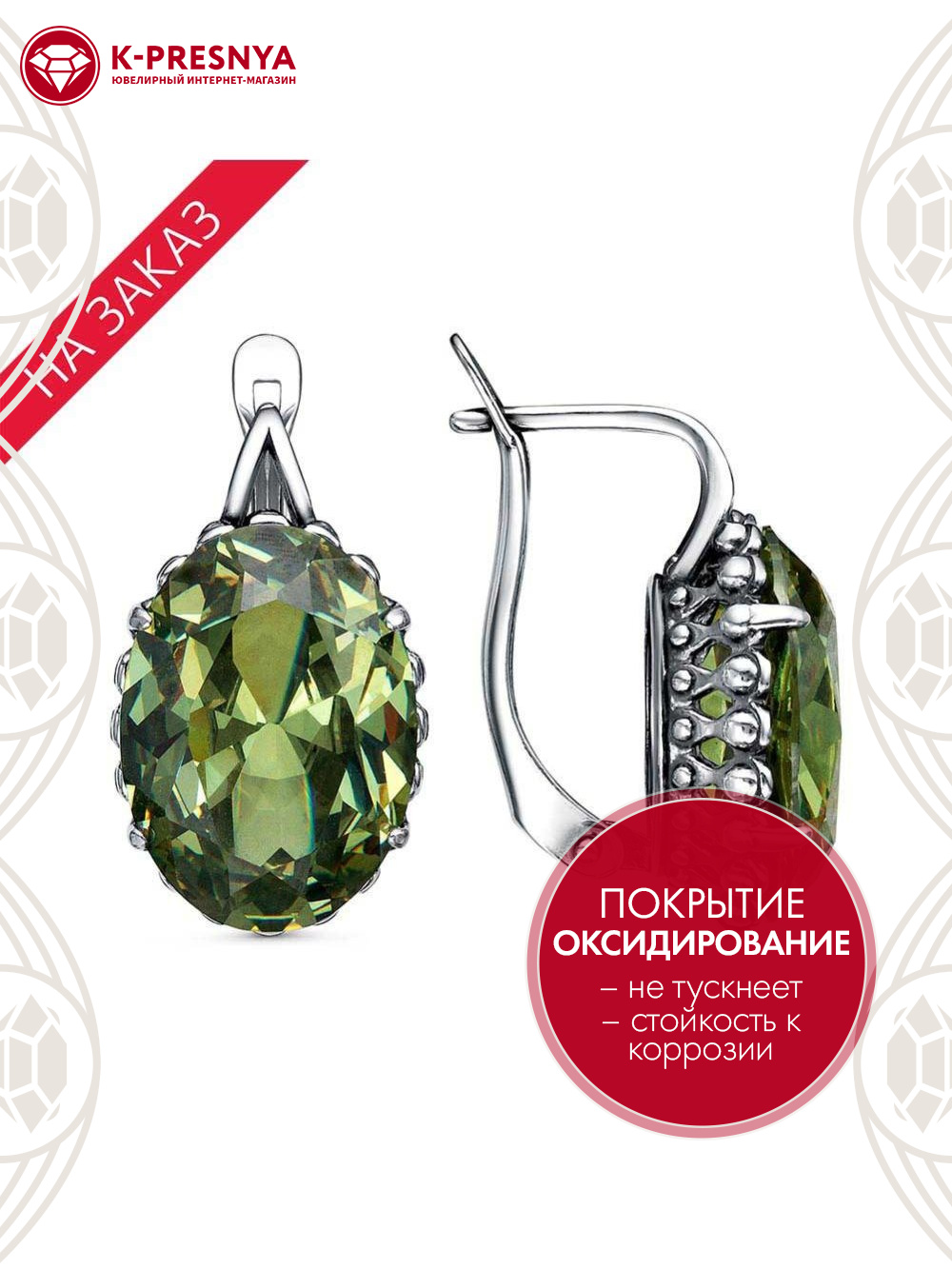 Серьги серебро 925 пробы, покрытие - оксидирование, вставка - фианит собственной огранки (недрагоценный камень)