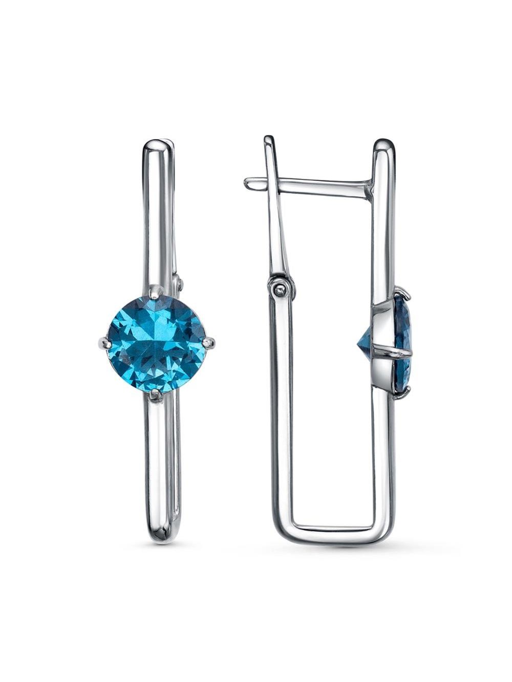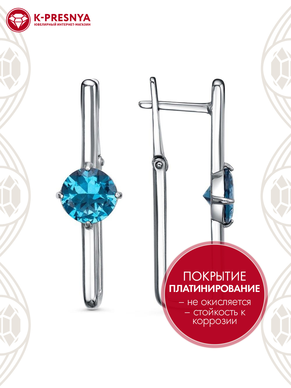 Серьги серебро 925 пробы, покрытие - платинирование, вставка - искусственная шпинель